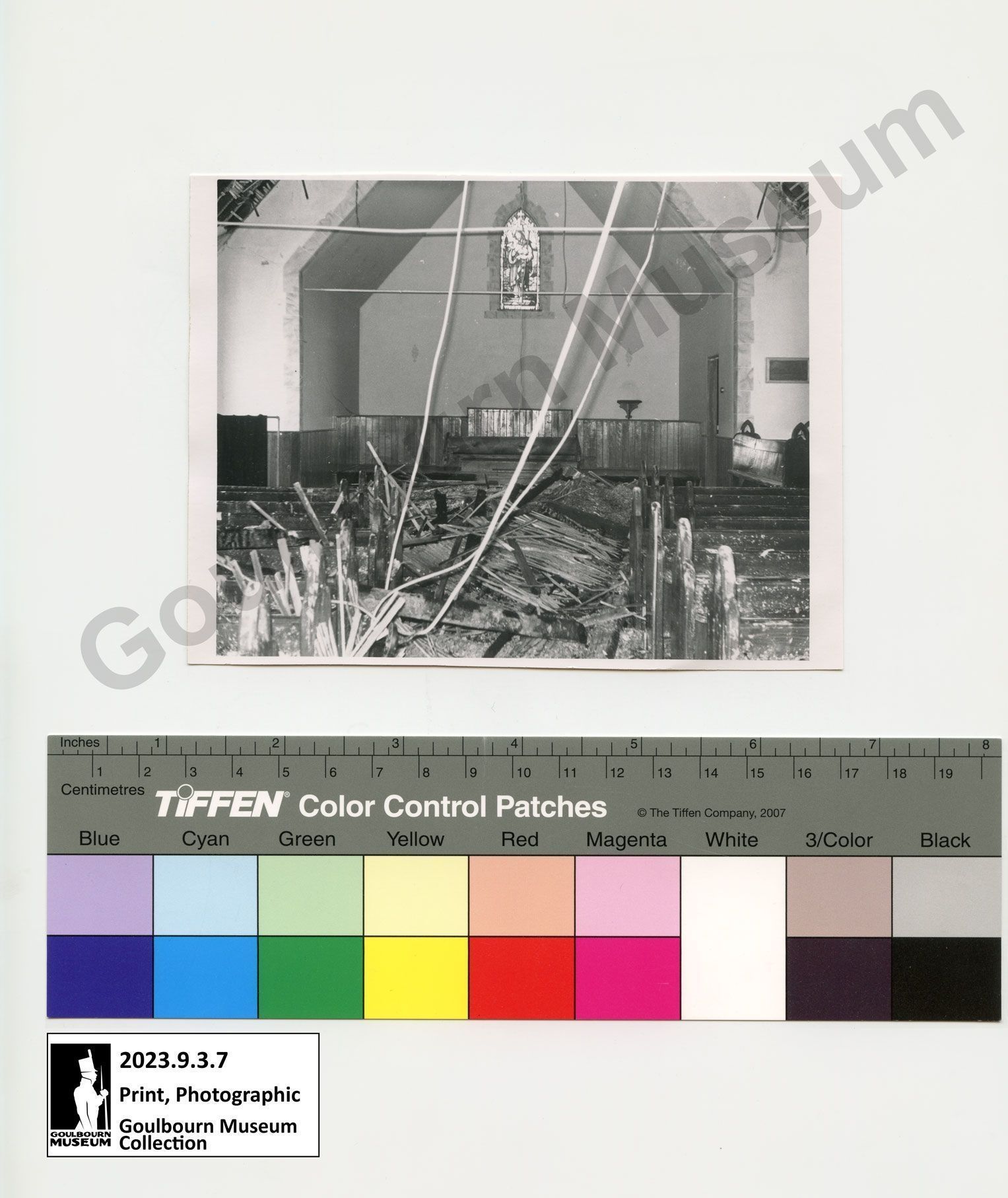 Print, Photographic: St. Thomas Anglican Church fire, June 26, 1964Entry/Object ID