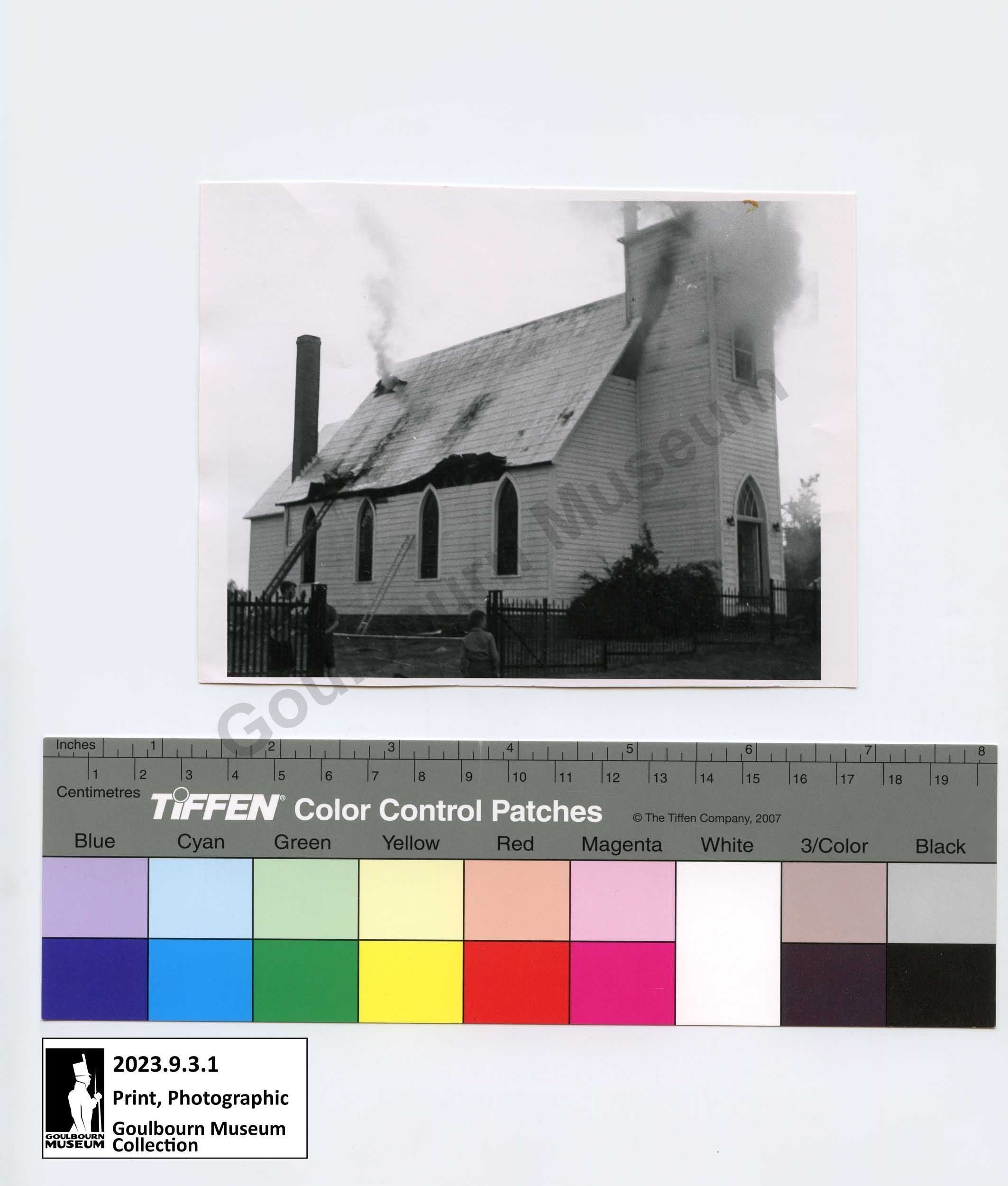 Print, Photographic: St. Thomas Anglican Church fire, June 26, 1964Entry/Object ID