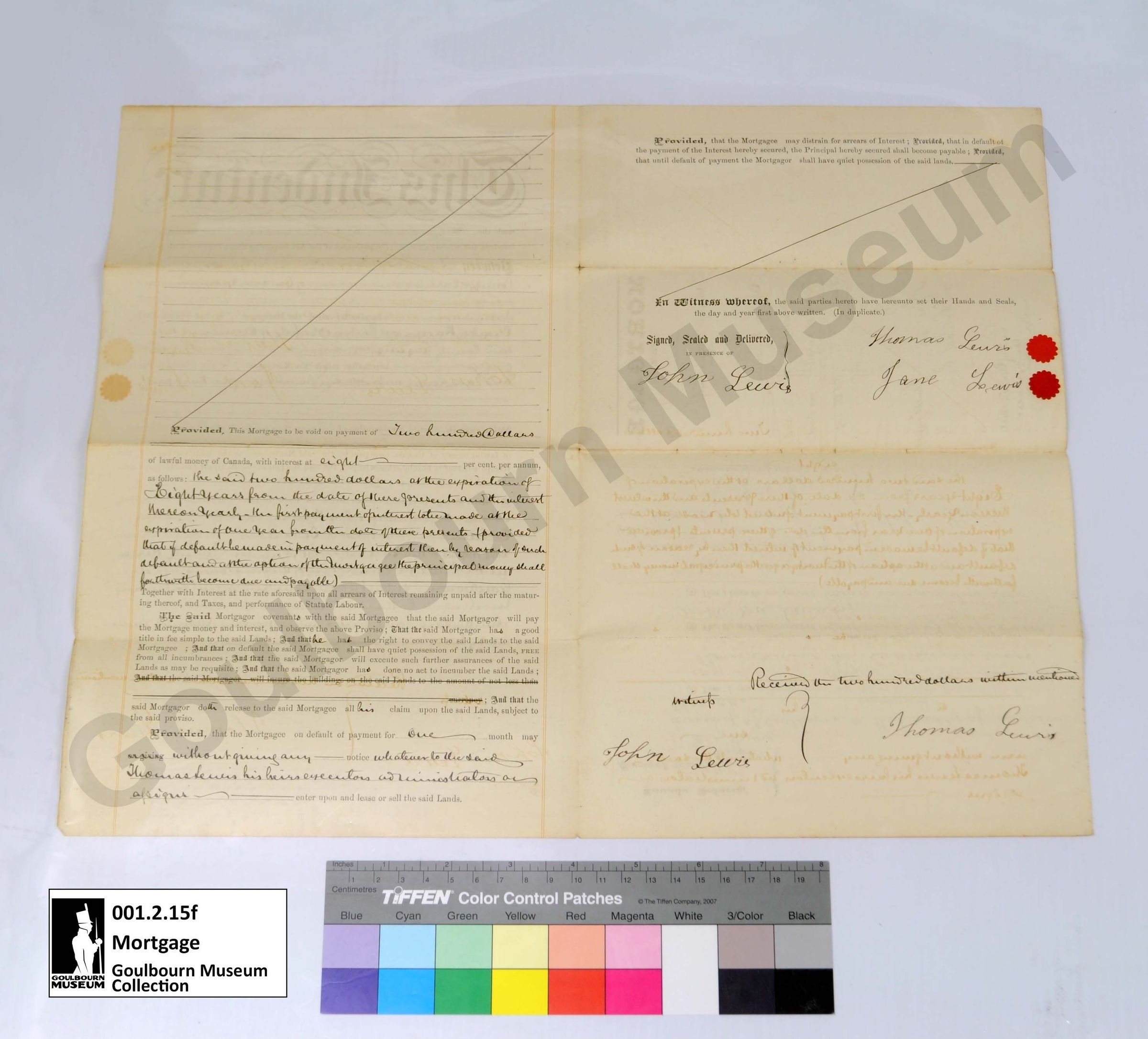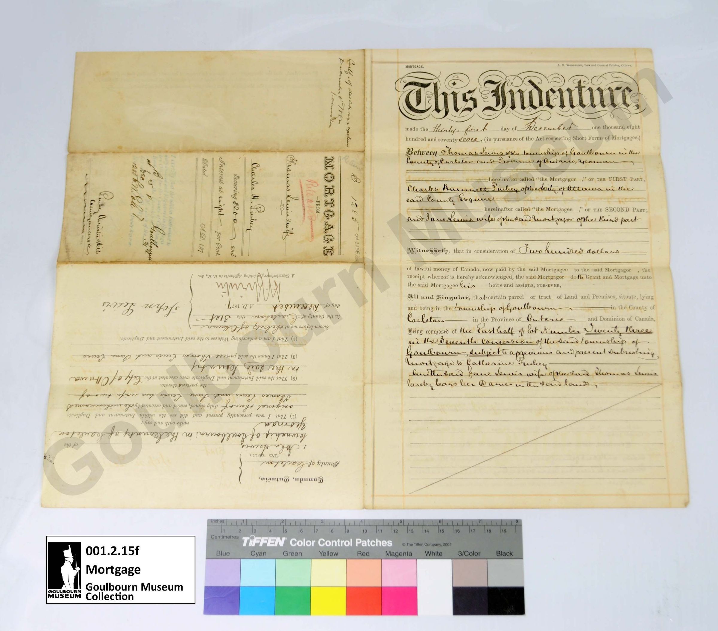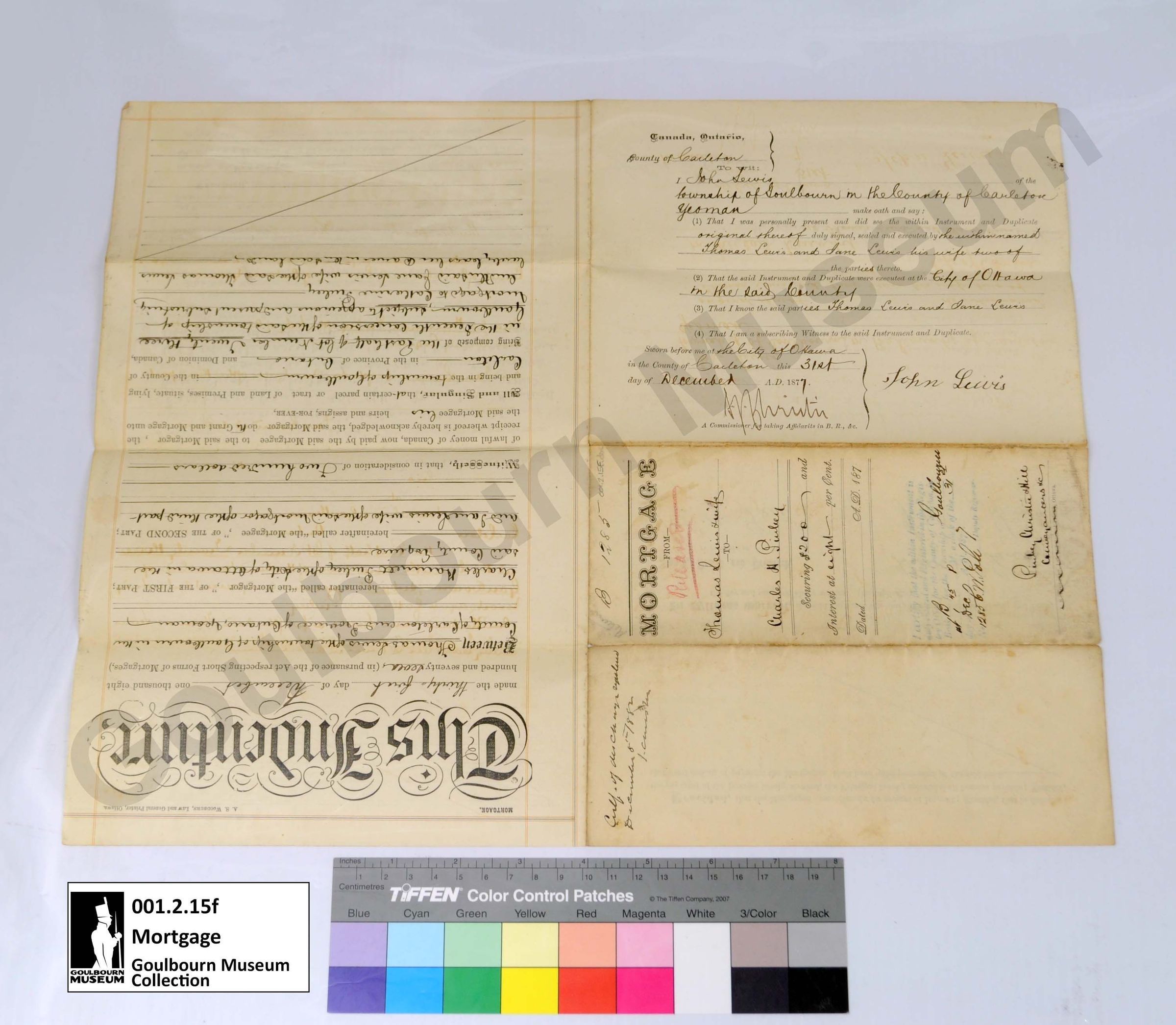 Muniment: Mortgage, Thomas Lewis, Charles H. Pinhey, 1877Entry/Object ID