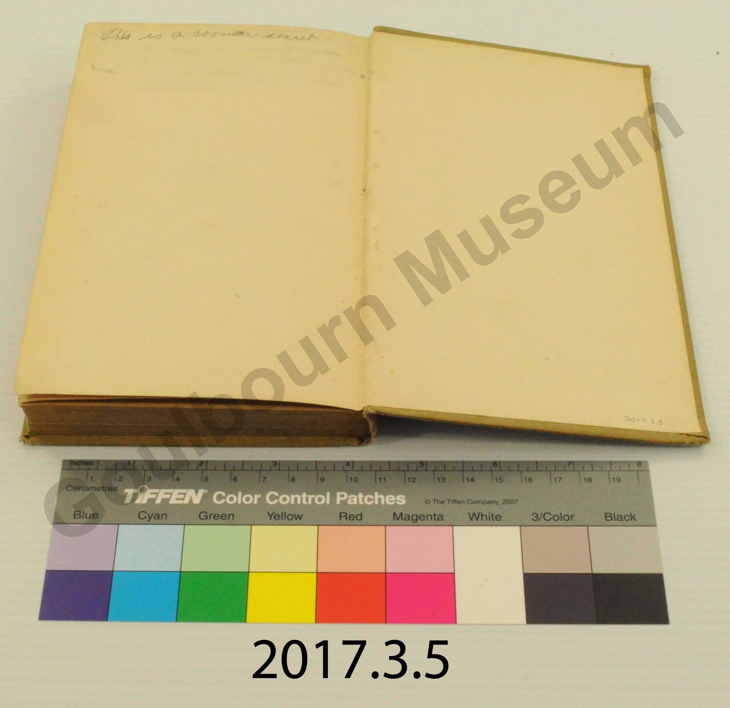 Book from 1939. Book belonged to Georgina McCrea who was the donor's (Ed Garland) wife. Lived on Franktown Road and attended SS #4 on Franktown West of Dwyer Hill.Collection