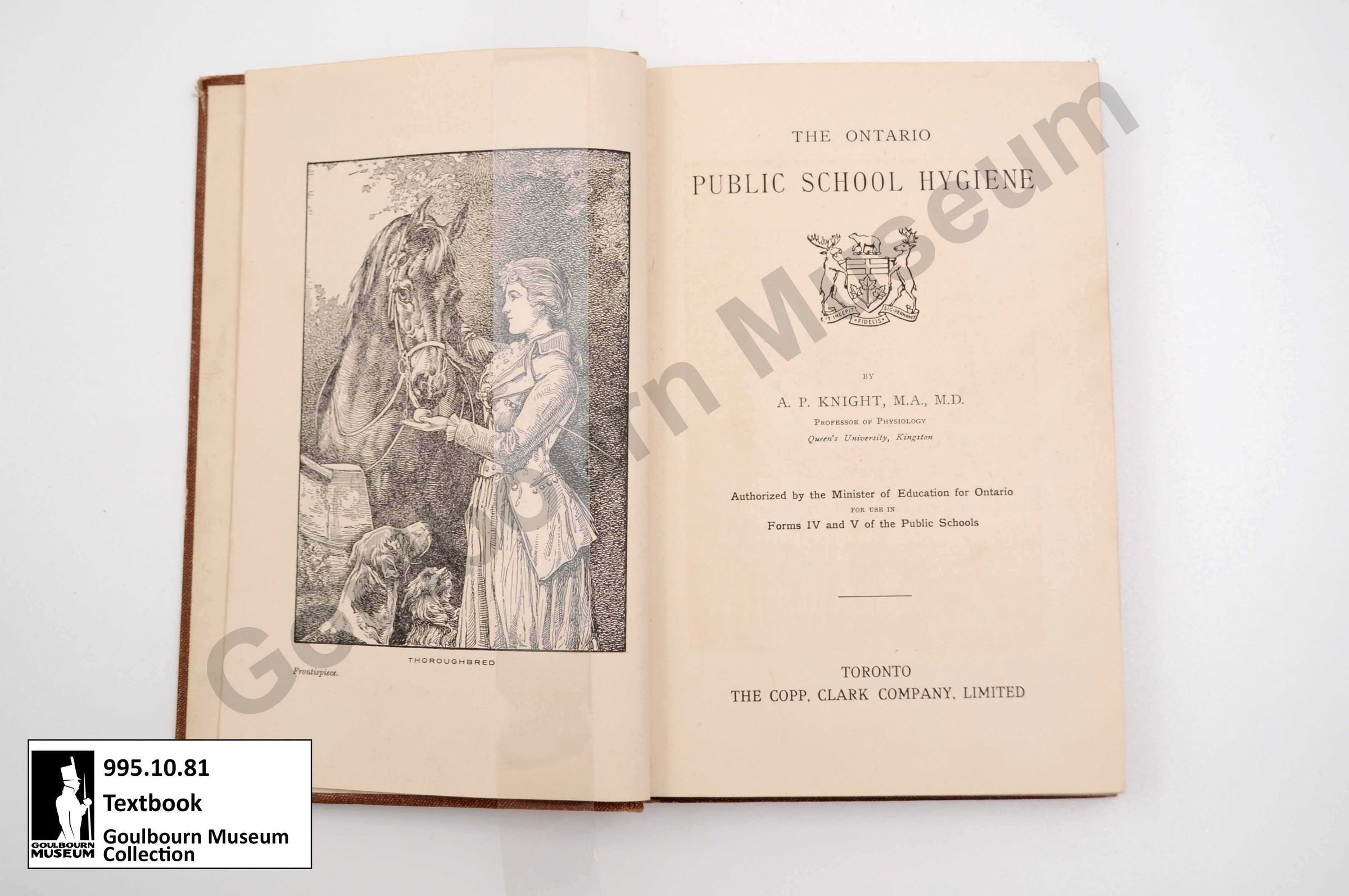 Book titled "The Ontario Public School Hygiene." Written by A.P. Knight. Published in 1915.