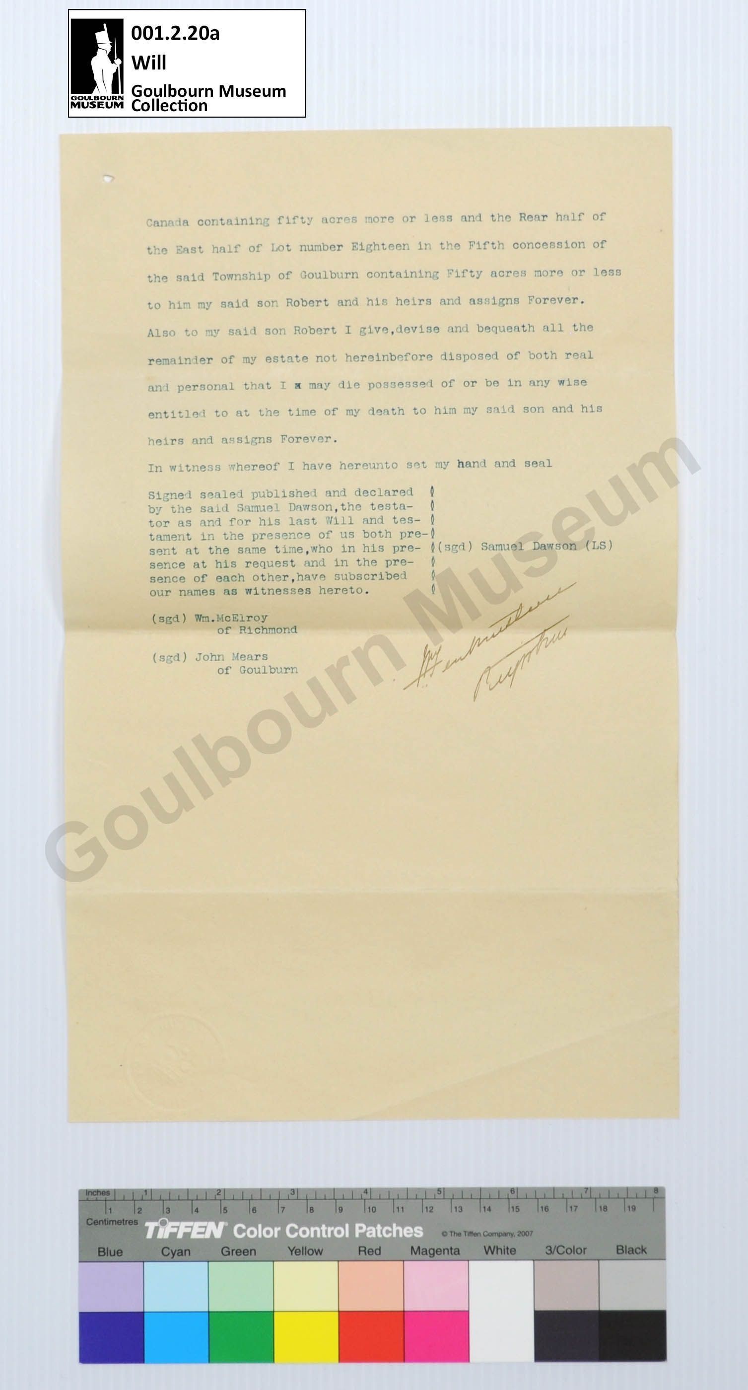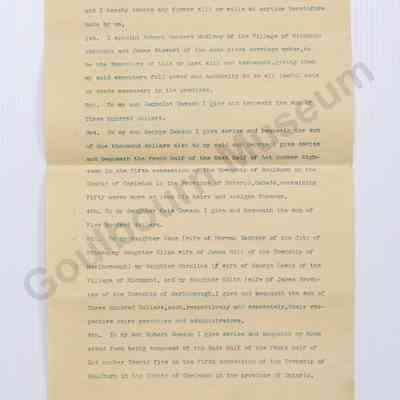 The Last Will and Testament of Samuel Dawson, June 30 1899.Collection