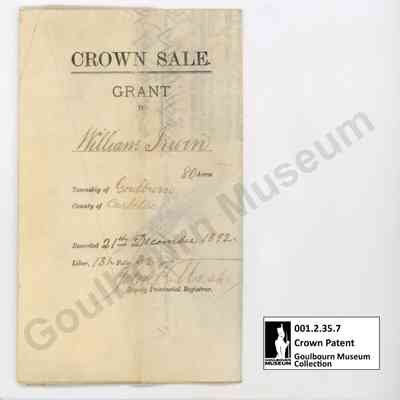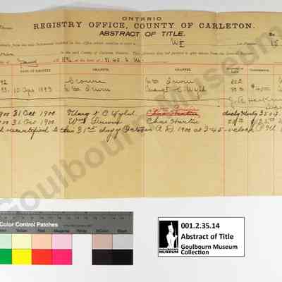 Abstract of Title: F1/2 of E1/2 Lot 6 Concession 8, 1899