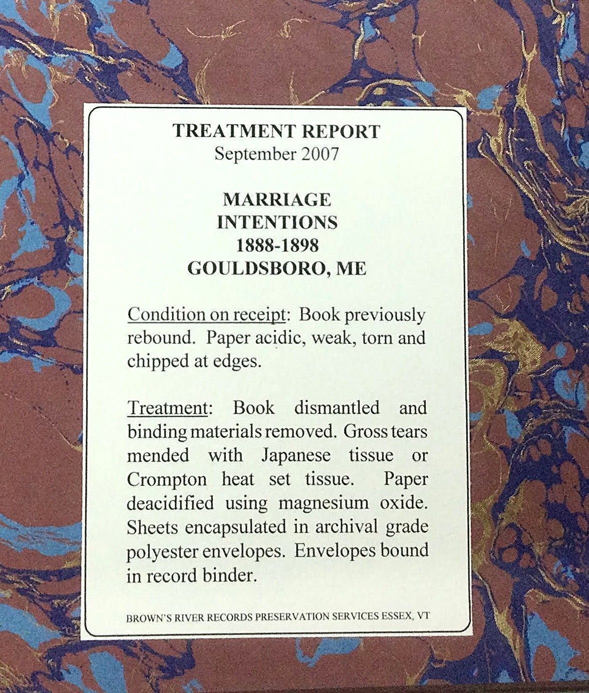 Original conserved in September, 2007 by Gouldsboro Town Manager. See Treatment Report Image on the inside cover of the book.Update Date