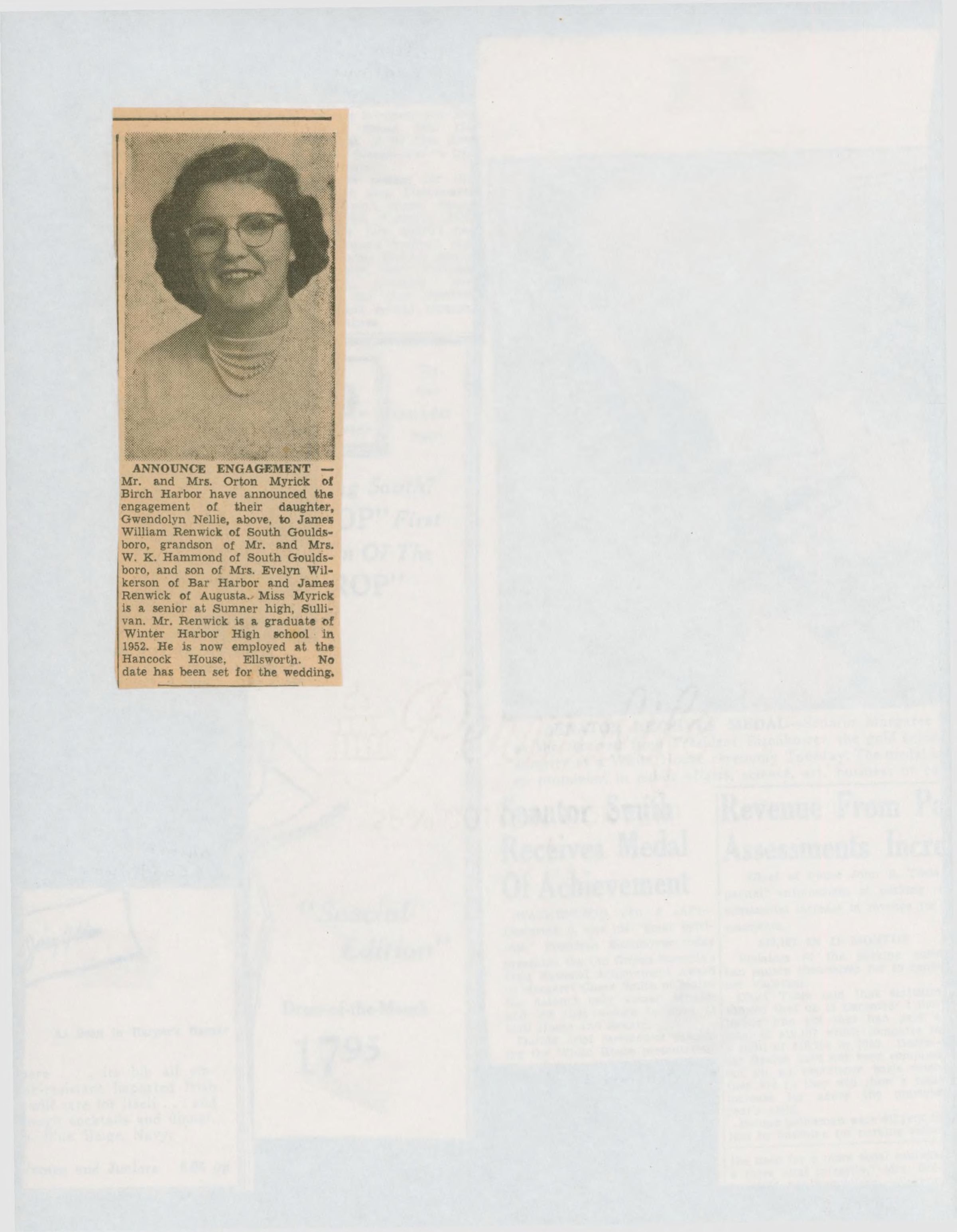 Engagement Announcement for Gwendolyn Nellie Myrick and James William Renwick.Archive Details