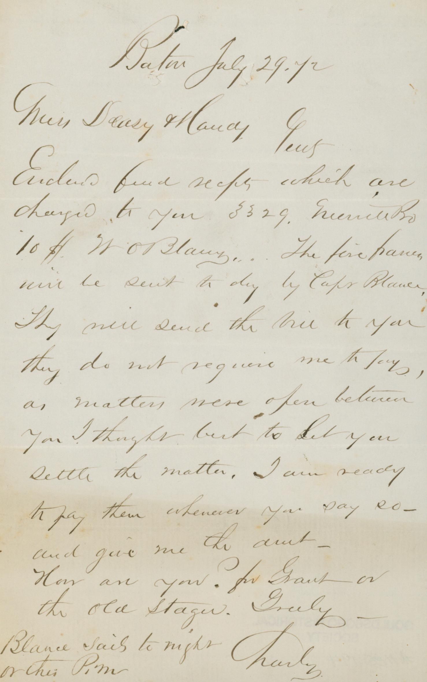 Letter to Deasy and Handy from CharlyEntry/Object ID