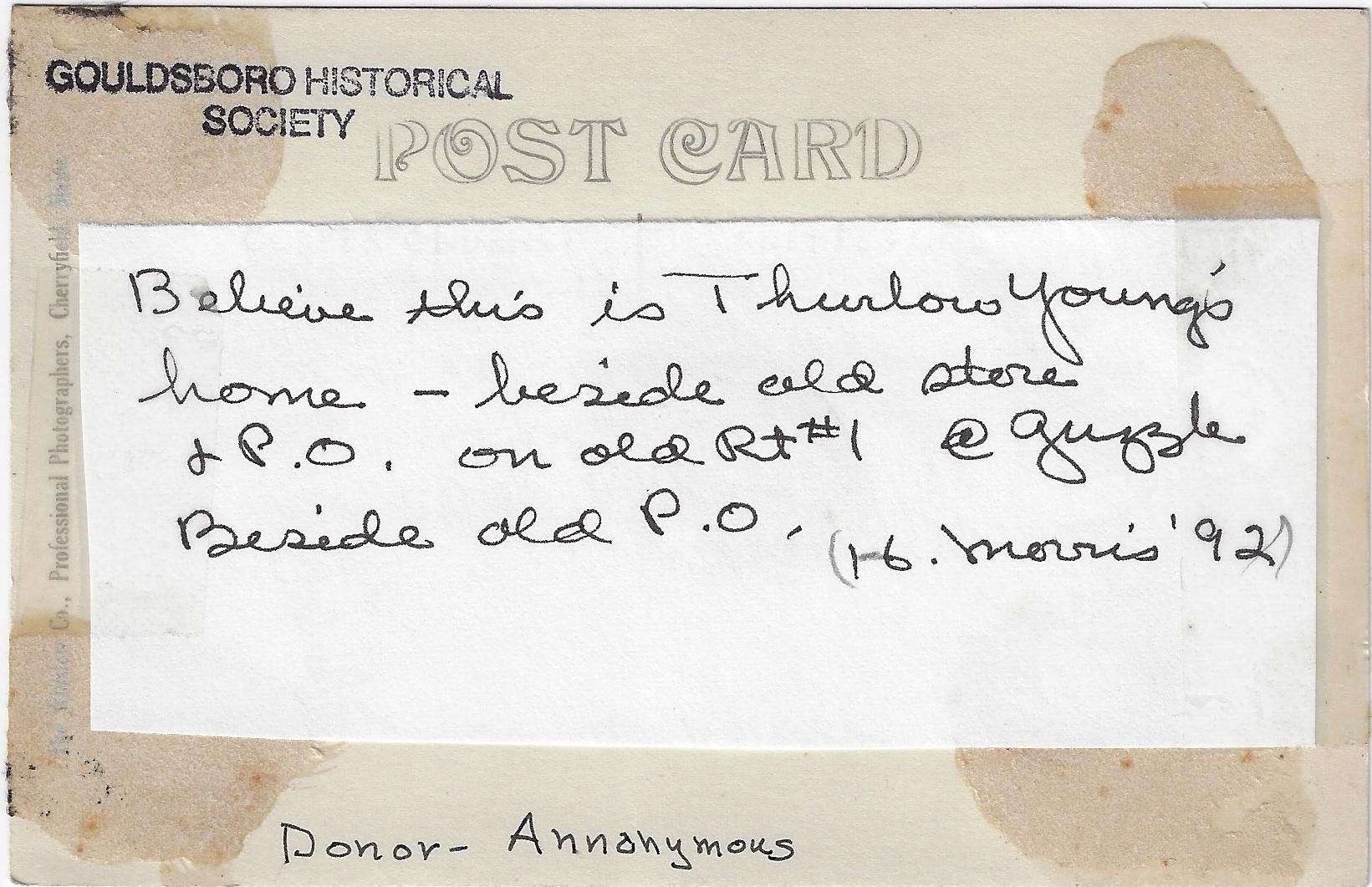 Thurlow Young's house beside the old store and post office on old Route 1 at the Guzzle.Photograph Details