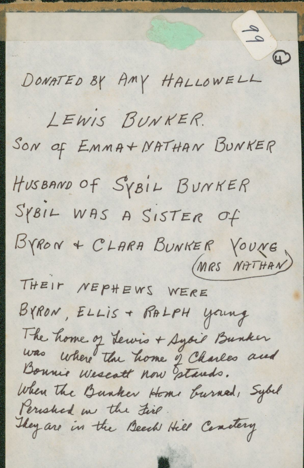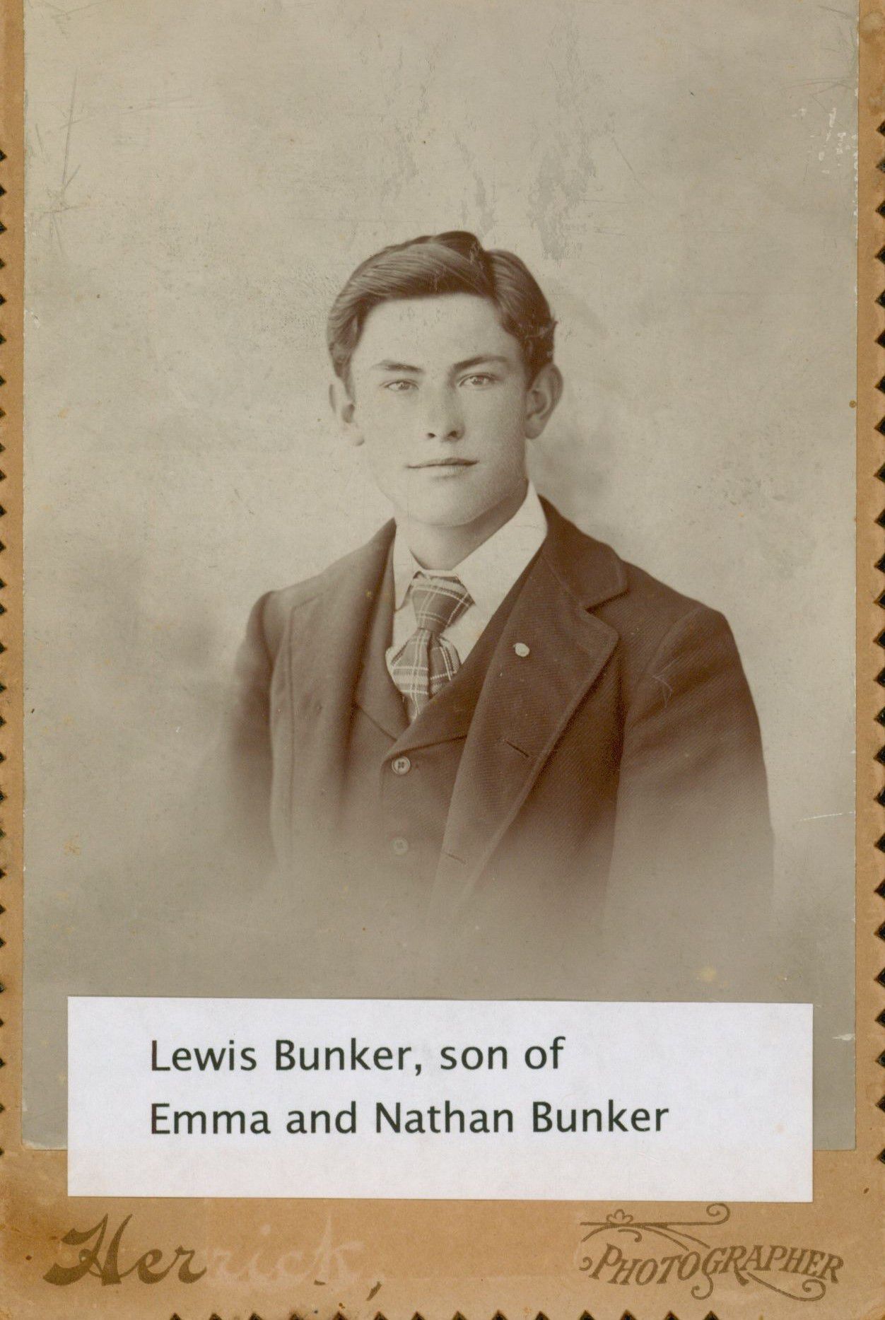 Photo of Lewis Bunker, son of Emma and Nathan Bunker. Additional information on the back of the photo.