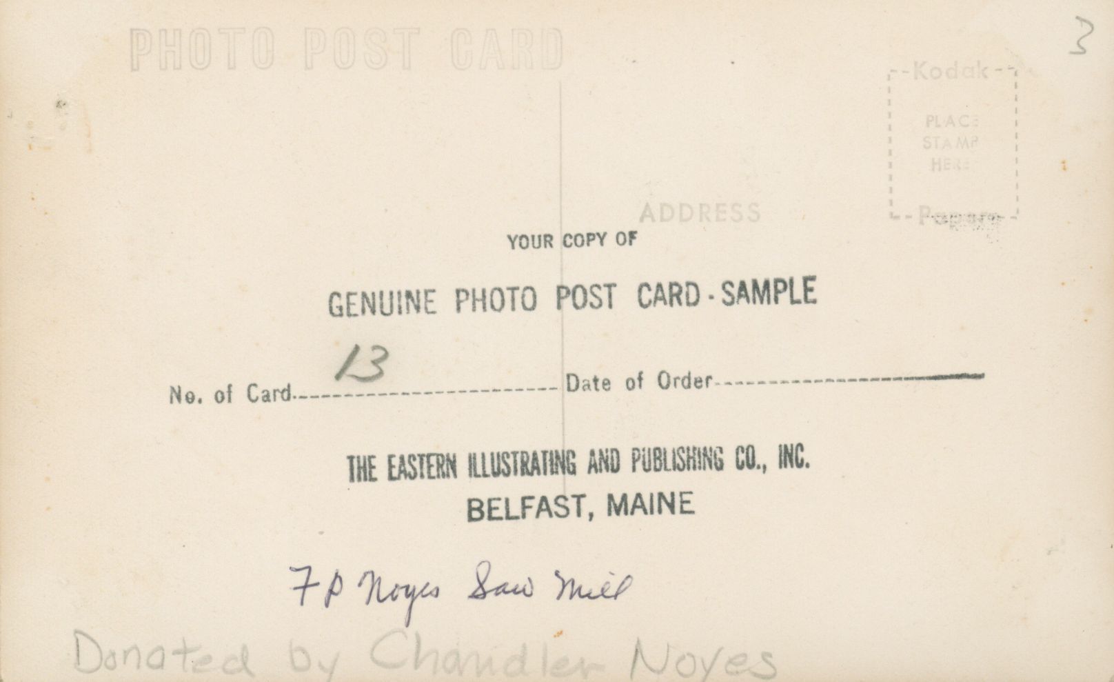 Saw mill owned by Frank Patten Noyes, then Fletcher Taft Wood in West Gouldsboro on Jones Cove. Mill was later moved to Chicken Mill.Photograph Details