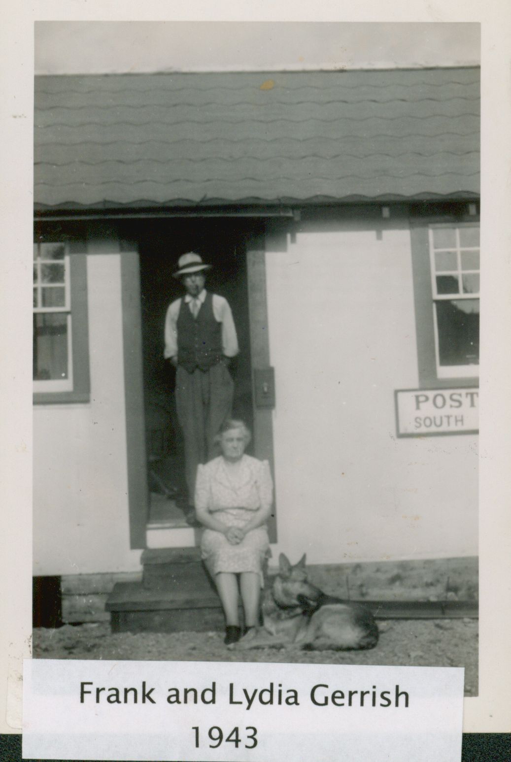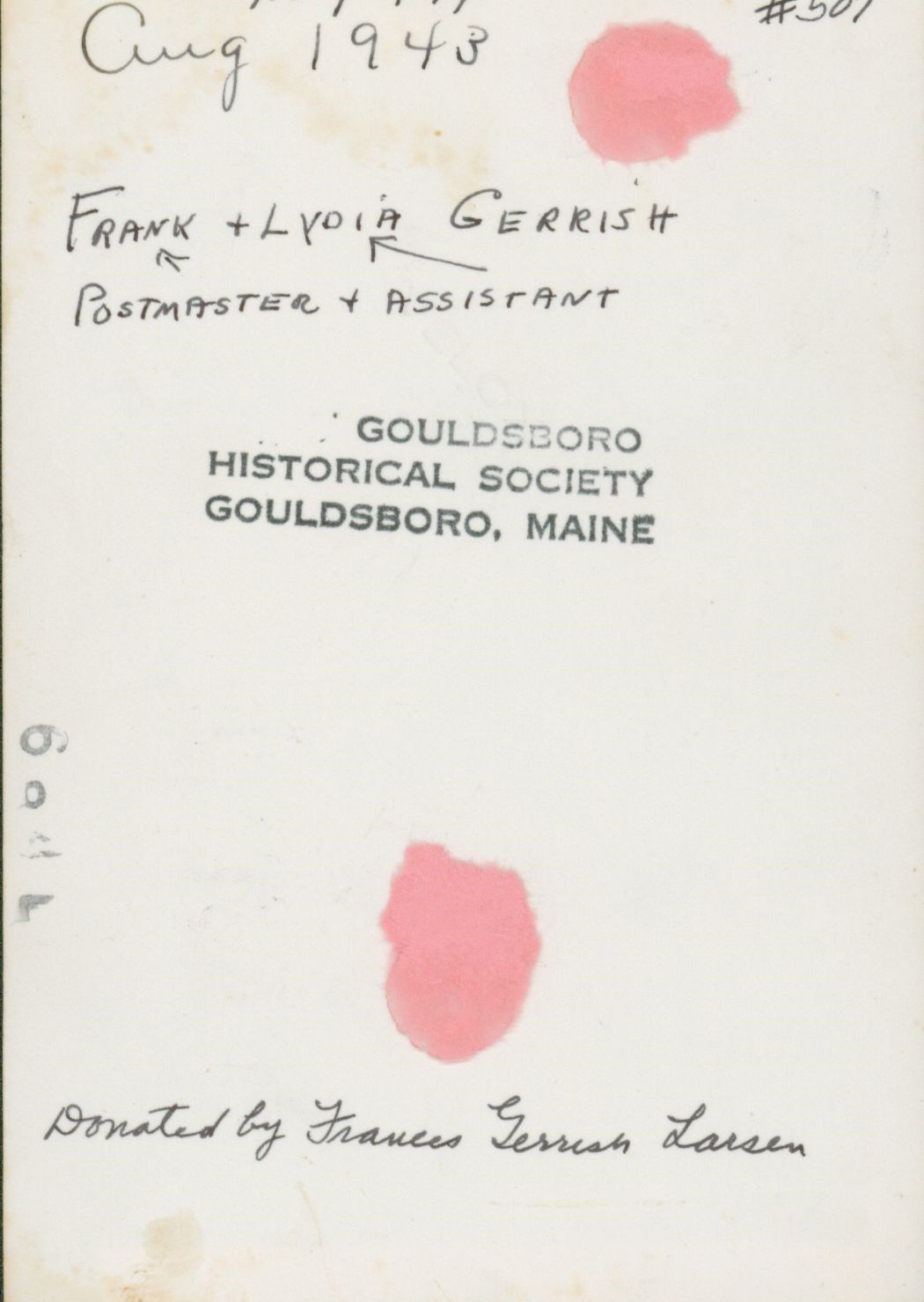Frank and Lydia Gerrish in front of the South Gouldsboro Post Office.Entry/Object ID