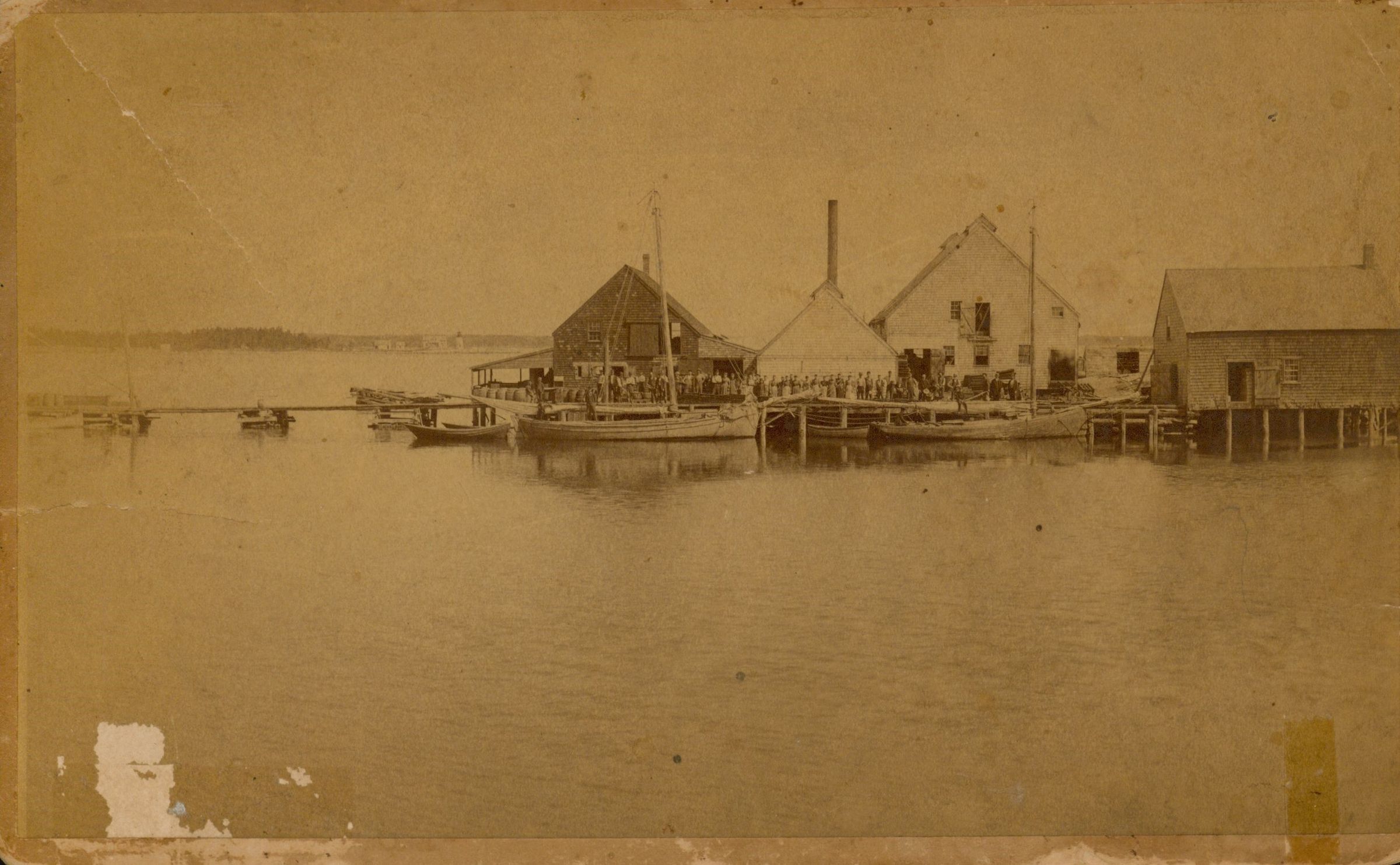 Old Factory on Prospect Harbor Wharf before the Stinson Sardine Factory was constructed. Undated.Photograph Details
