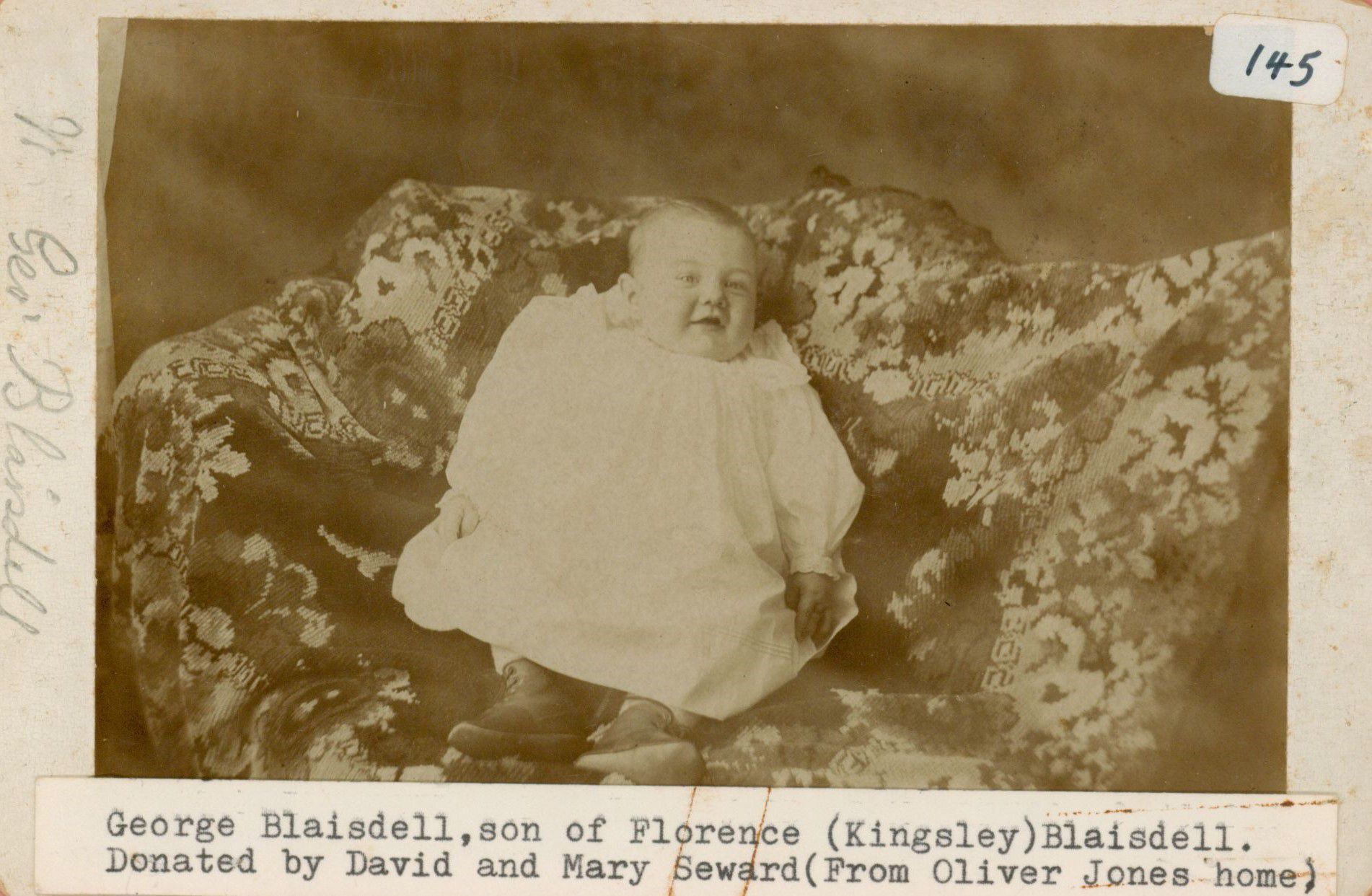 Baby picture of George Blaisdell, son of Florence Kingsley Blaisdell. Undated.Photograph Details