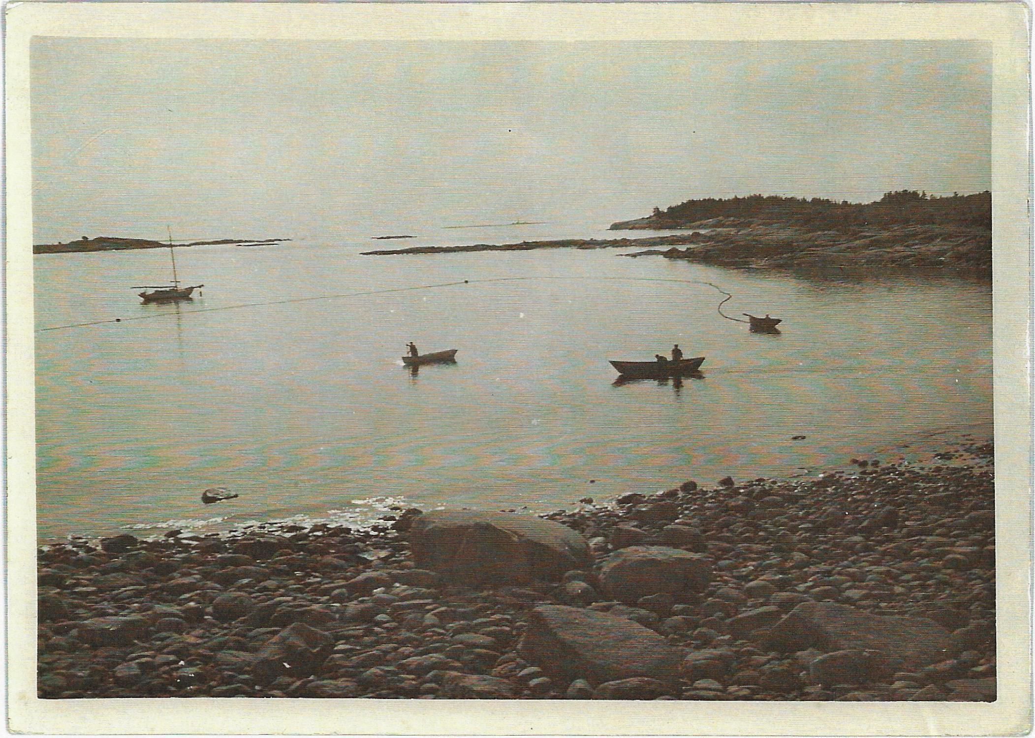 Fishing in Corea, Maine harbor. Western Island on the right. Rocky shore.Photograph Details