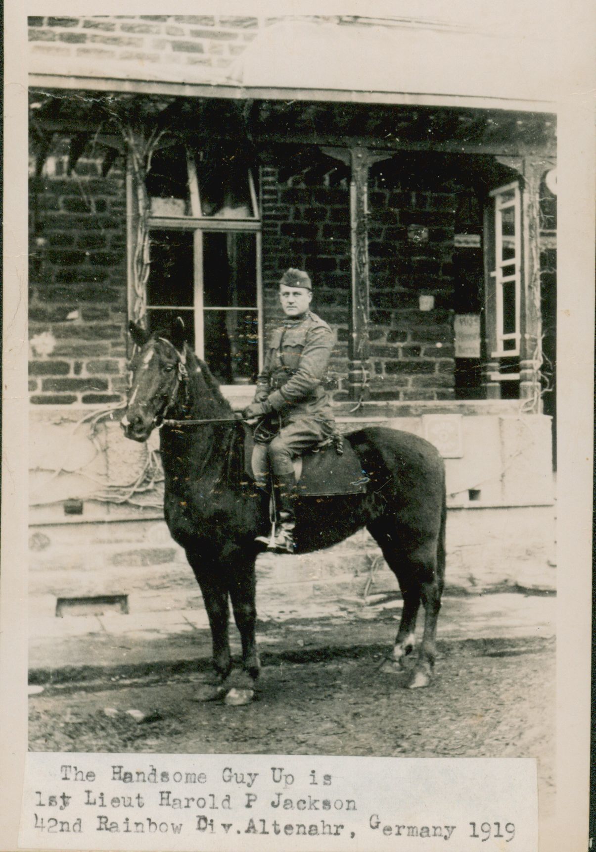 Harold P. Jackson. 1st Lieutenant, 42nd Rainbow Division. Altenahr, Germany. 1919. Cousin of Philip Shaw Wood.Photograph Details