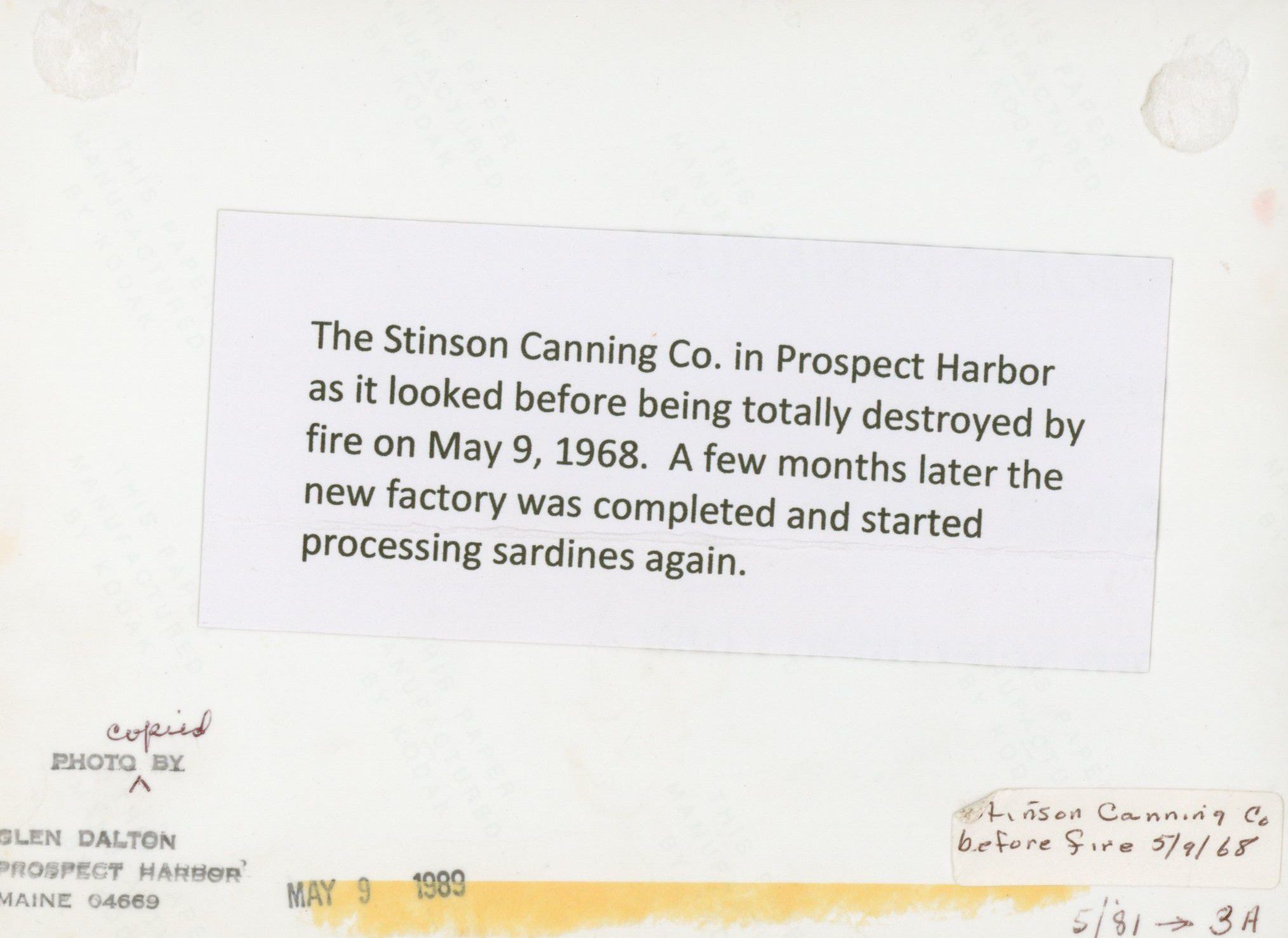 Stinson Canning Company, Prospect Harbor, ME.Entry/Object ID