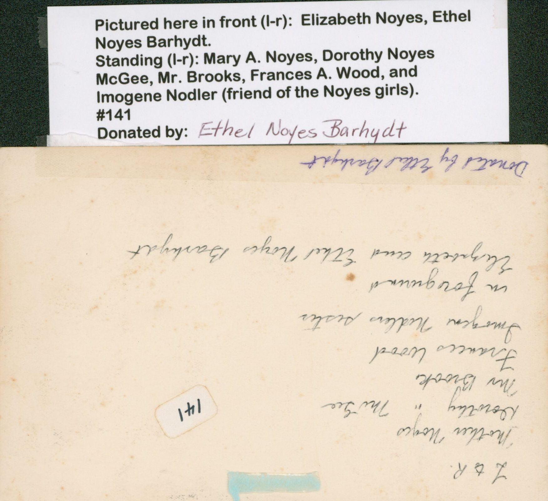 Noyes, Mary A. Lord (1865 - 1957)., Barhydt, Ethel Wood Noyes (1901 -1991)., Barhydt, Elizabeth Hall Noyes (1903 - 1989)., McGee, Dorothy Marie Noyes (1896 - 1997)., Wood, Frances Andrews (1893 -1988)., Nodler, ImogeneSubject Place