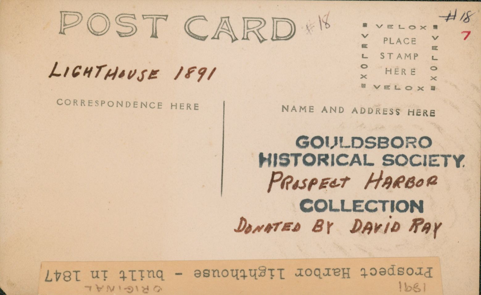Postcard of the Prospect Harbor Lighthouse and Keeper's Cottage in 1891.Photograph Details