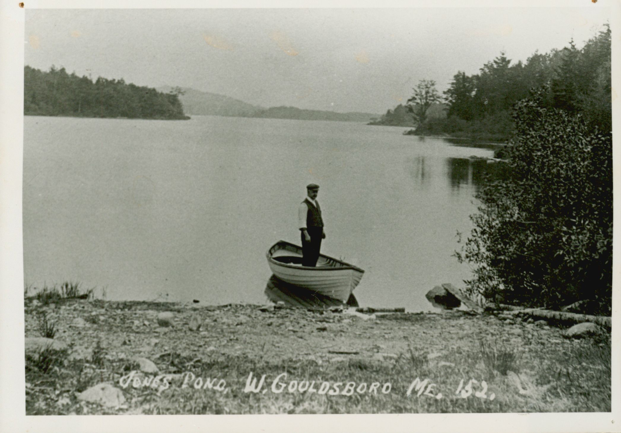 Man in boat on Jones Pond, West Gouldsboro ME. 152.Entry/Object ID