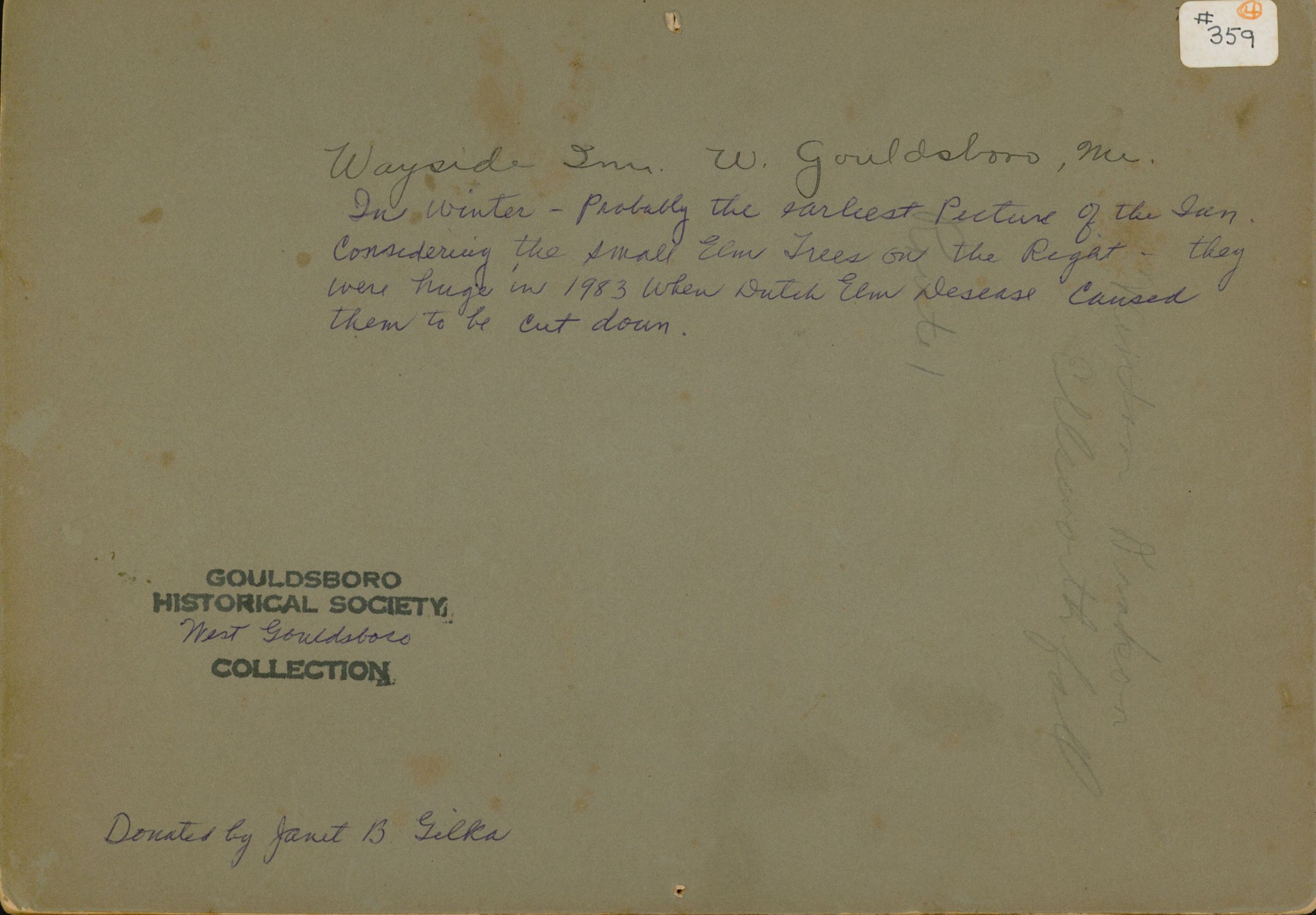 Wayside Inn. Likely one of the earliest photographs of the Inn given the size of the trees. The Dutch Elm trees were huge in 1983 when they were cut down due to Dutch Elm disease.Photograph Details