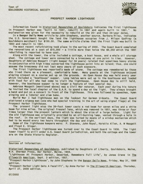 Brief history of the Prospect Harbor LighthousePublication Details