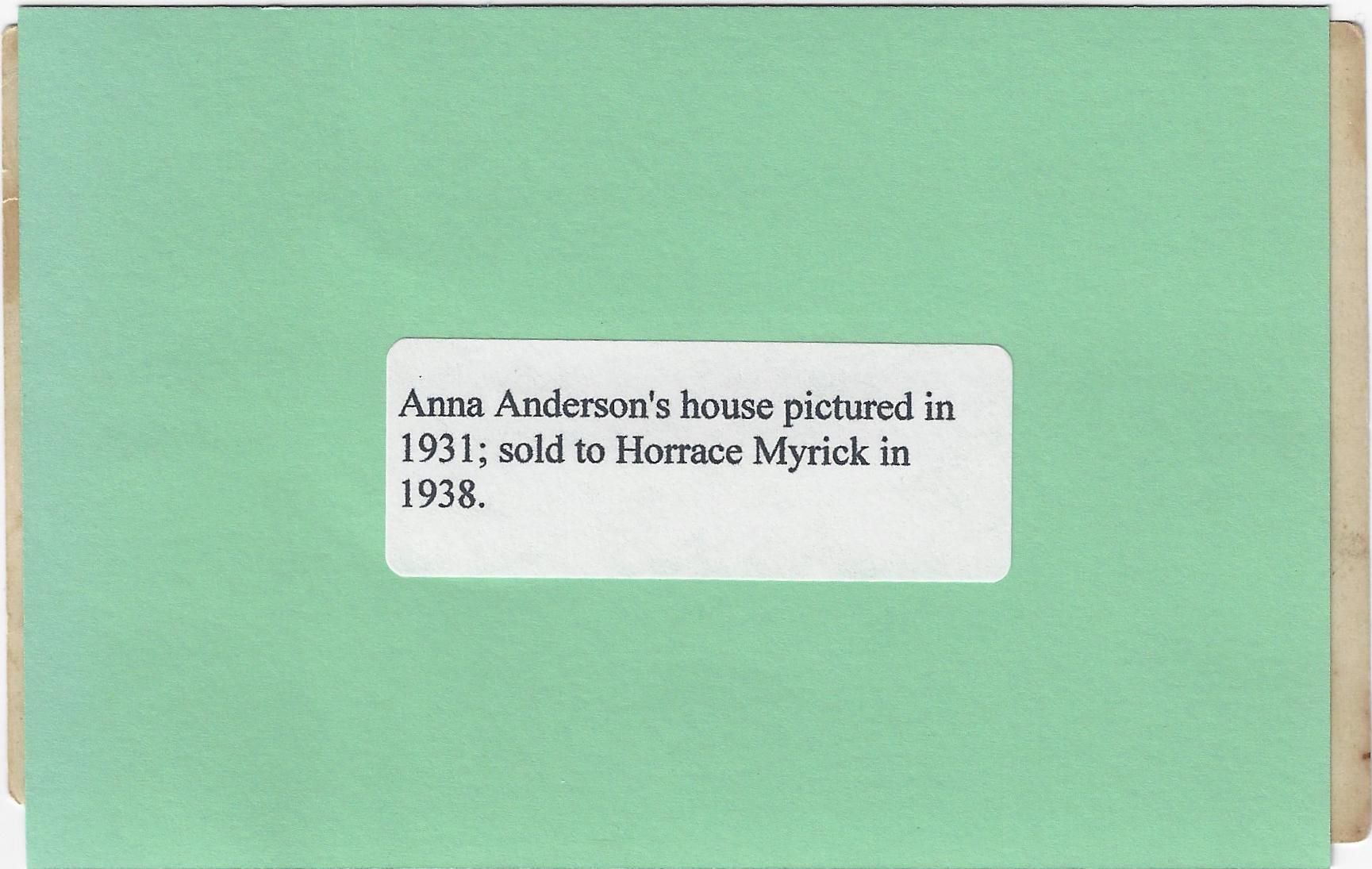 Anna Anderson's house in 1931. Sold to Horrace Myrick in 1938.Photograph Details