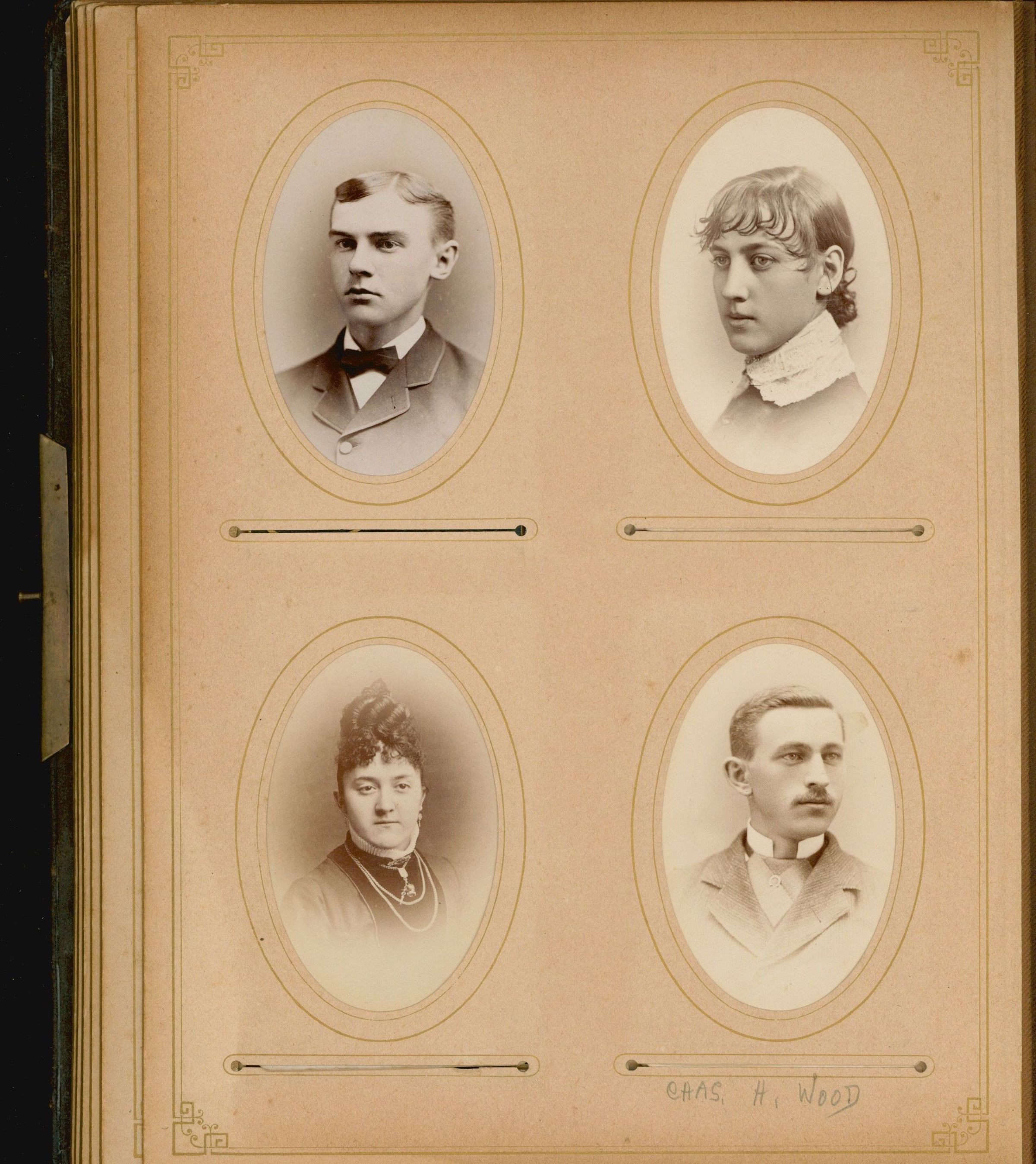 Henry Wood Family Photo Album. Black and white portraits of Wood family members. Some of the people are named.Photograph Details
