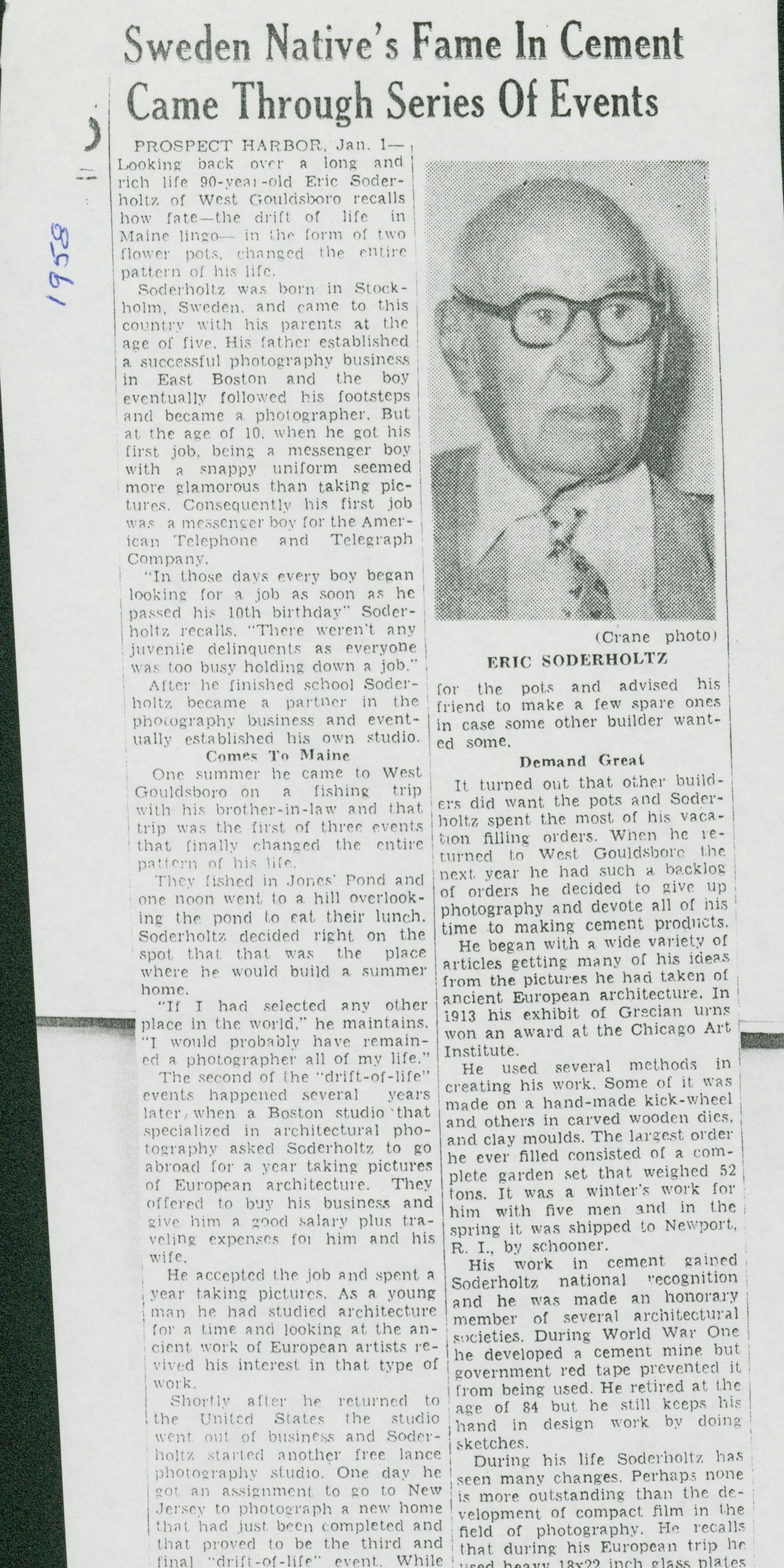 Short article about Eric Ellis Soderholtz. Author, and publisher unknown.Archive Details