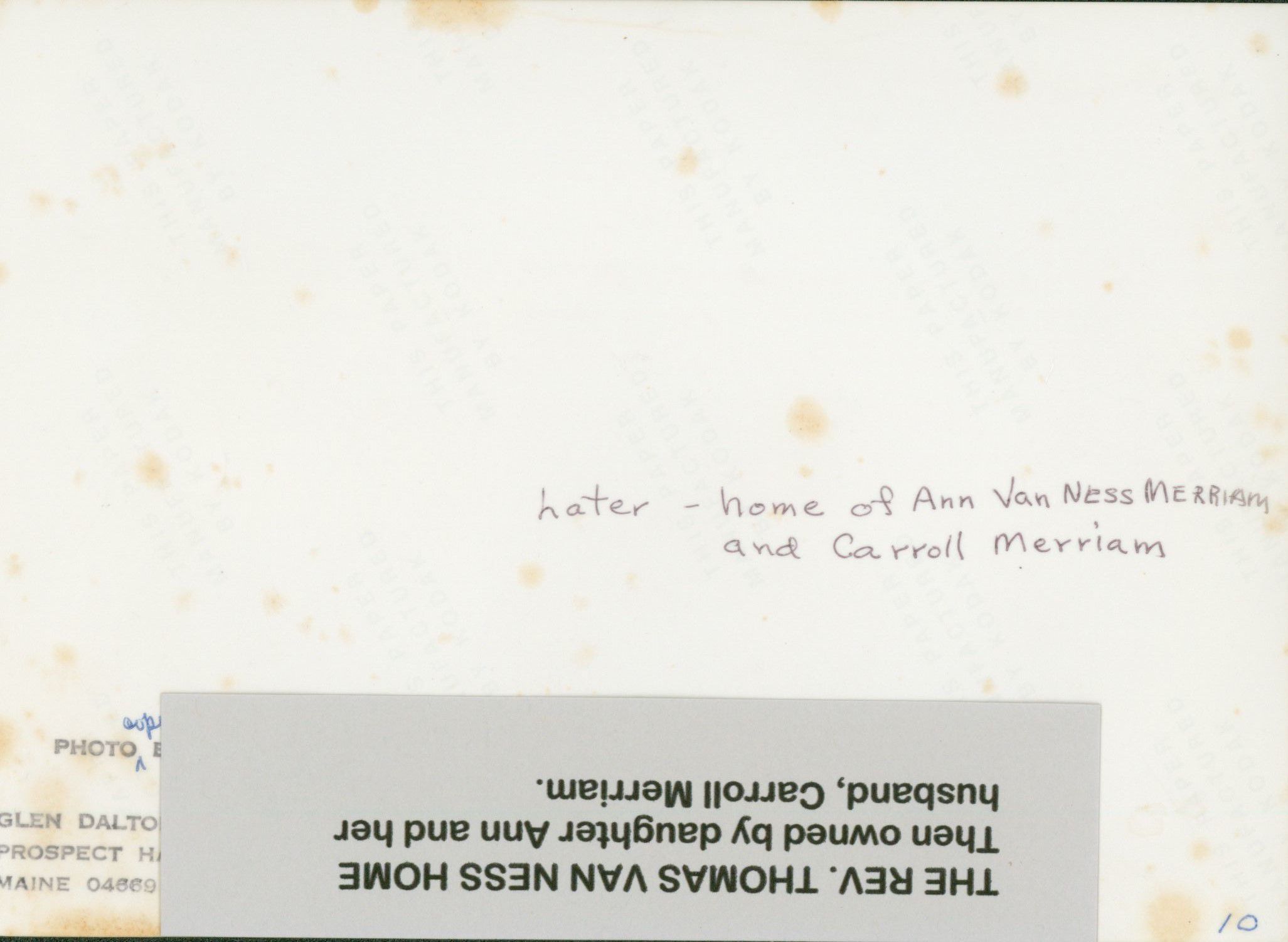 Rev. Thomas Van Ness House in Prospect Harbor. Later owned by daughter Ann Van Ness and her husband Carroll Merriam.Photograph Details