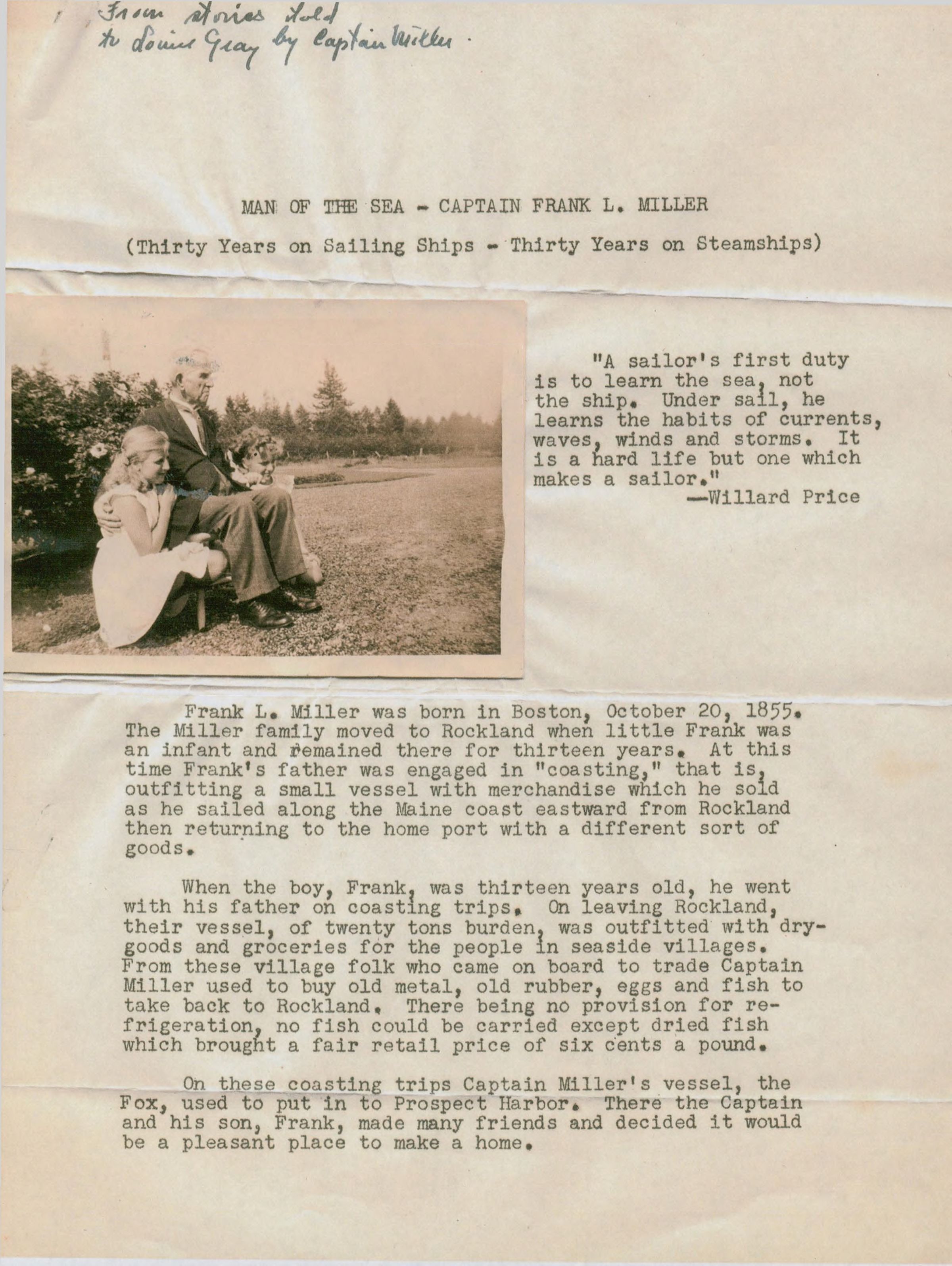 Captain Frank L. Miller biography as told to Louise Deasy Gray.