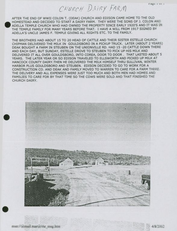 Brief history of the Church Dairy Farm in Birch Harbor.Relationships