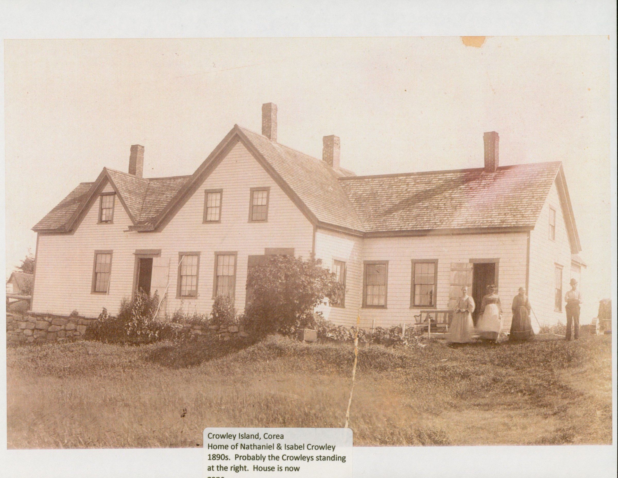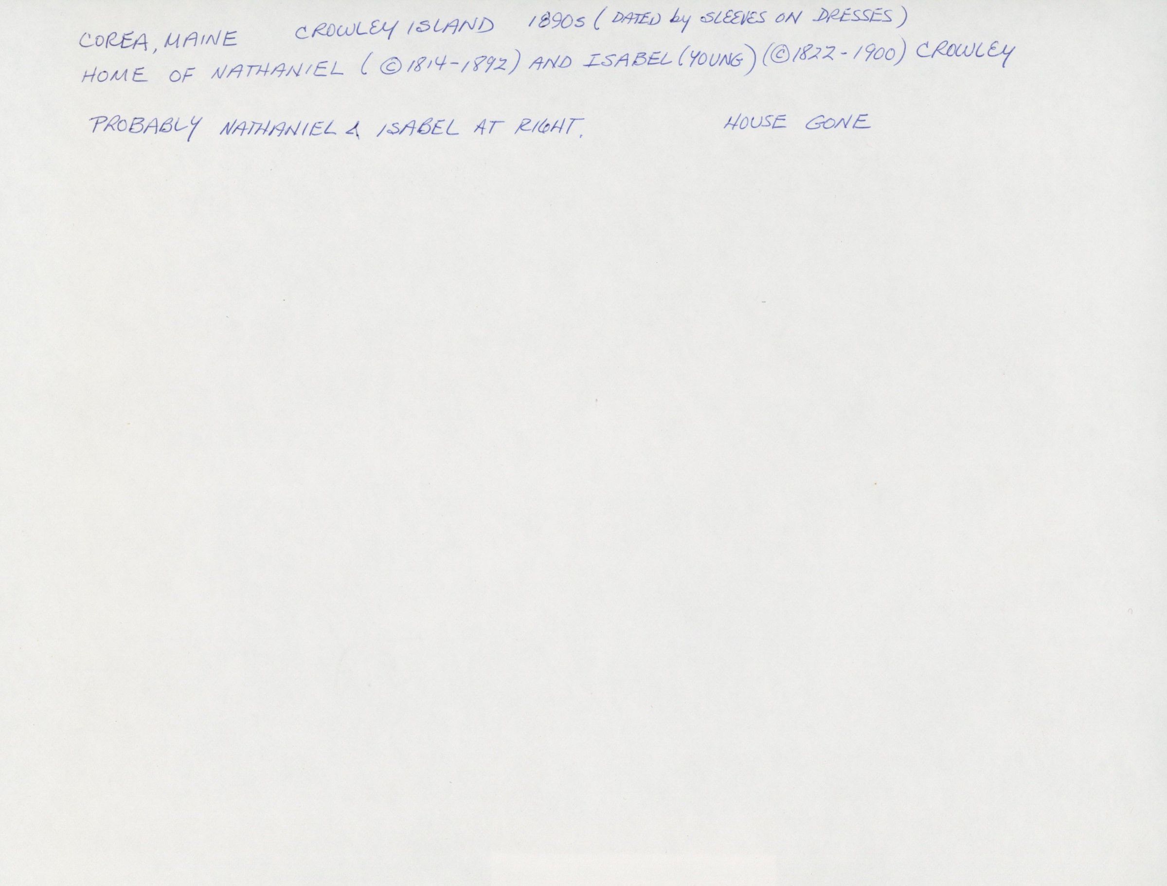 Home of Nathaniel and Elizabeth Crowley on Crowley Island in Corea, Maine in the 1890s. House no longer exists.Photograph Details