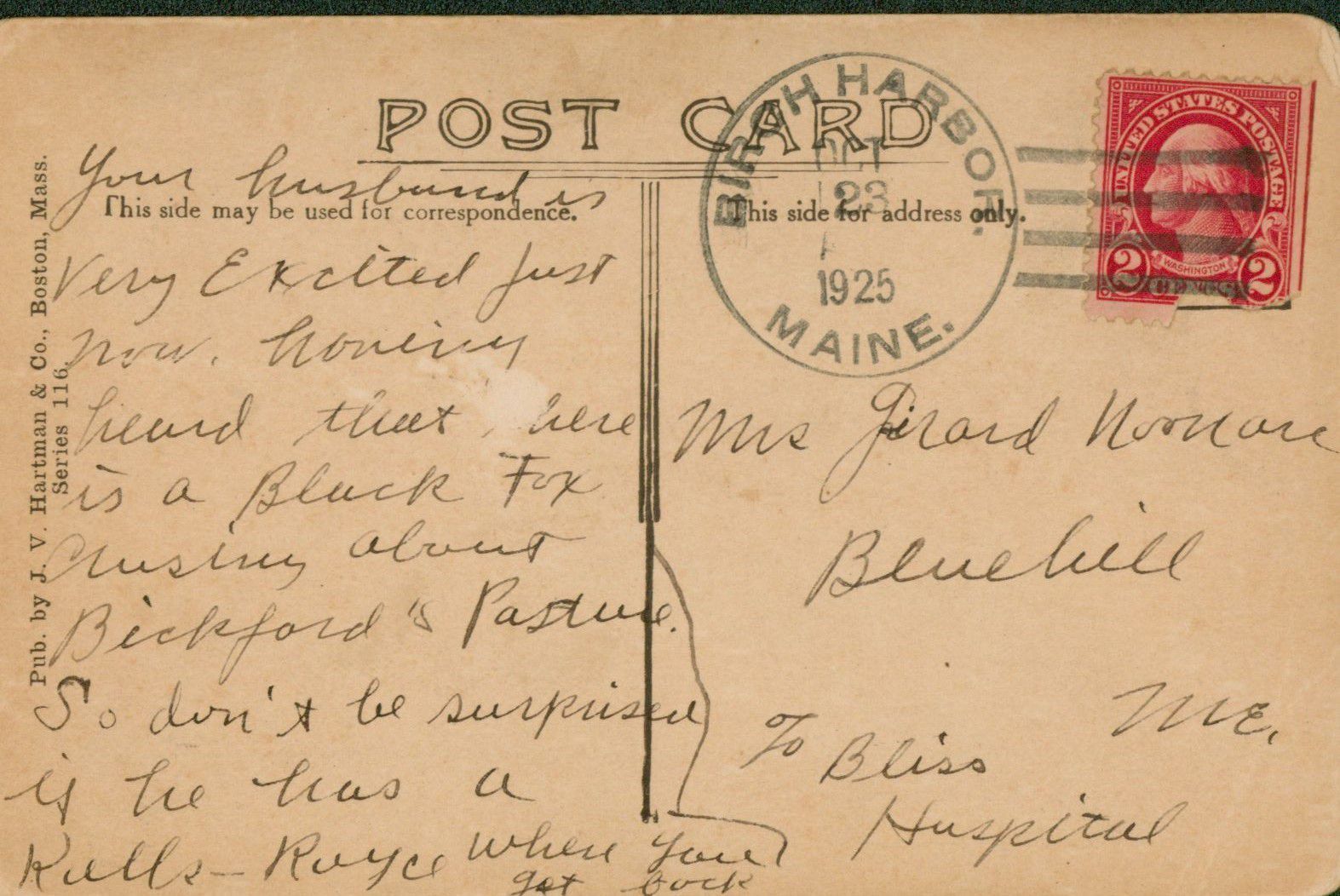 Westward view of Main Street in Prospect Harbor. Grammar school and Union Church in the center.Photograph Details