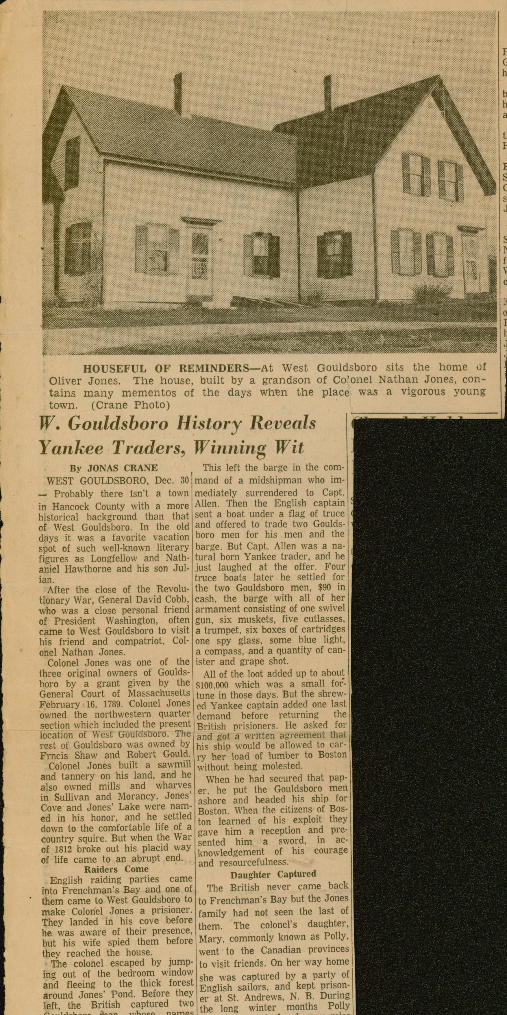 Brief history of West Gouldsboro including photo of the Oliver Jones house.Archive Details