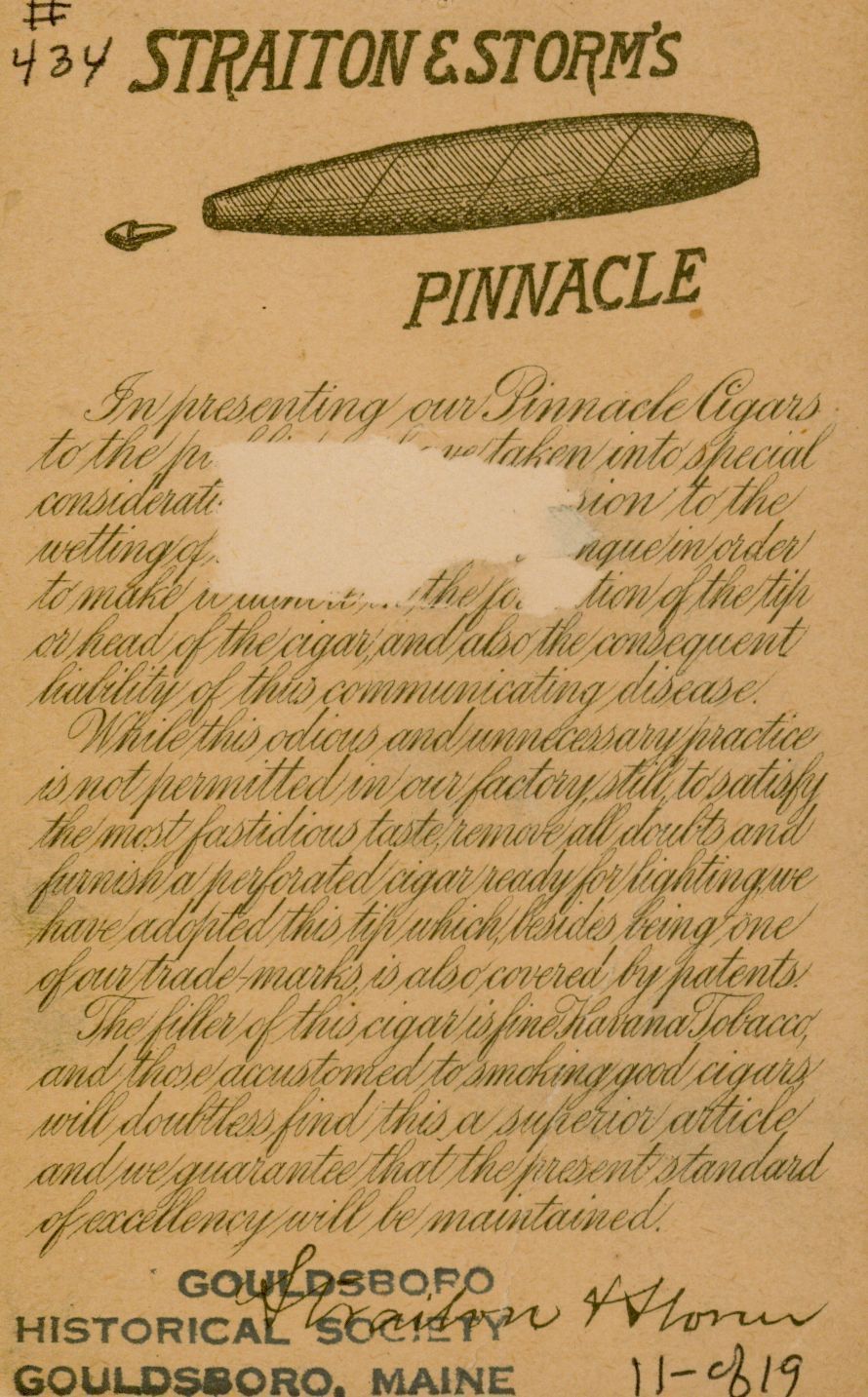 Advertising card for Straiton & Storm's Pinnacle CigarsRelationships