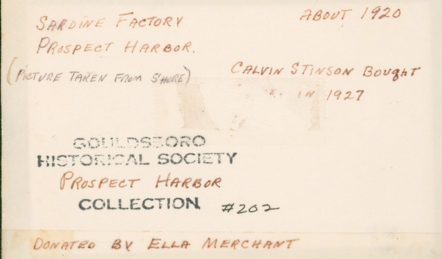 Prospect Harbor Sardine Factory.Entry/Object ID