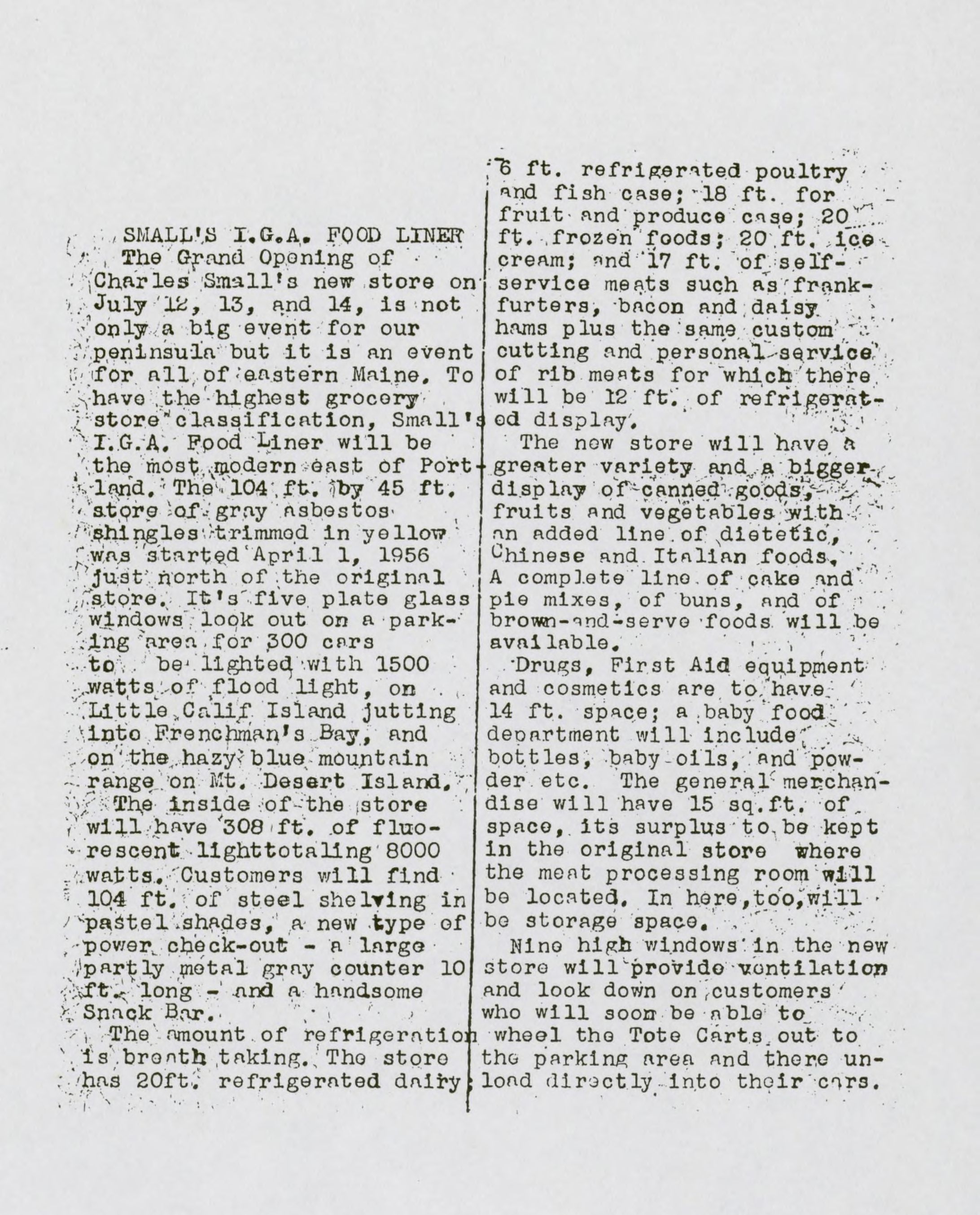 Article from the Peninsula Gazette about the 1956 grand opening of Small's IGA in Ashville.Archive Details