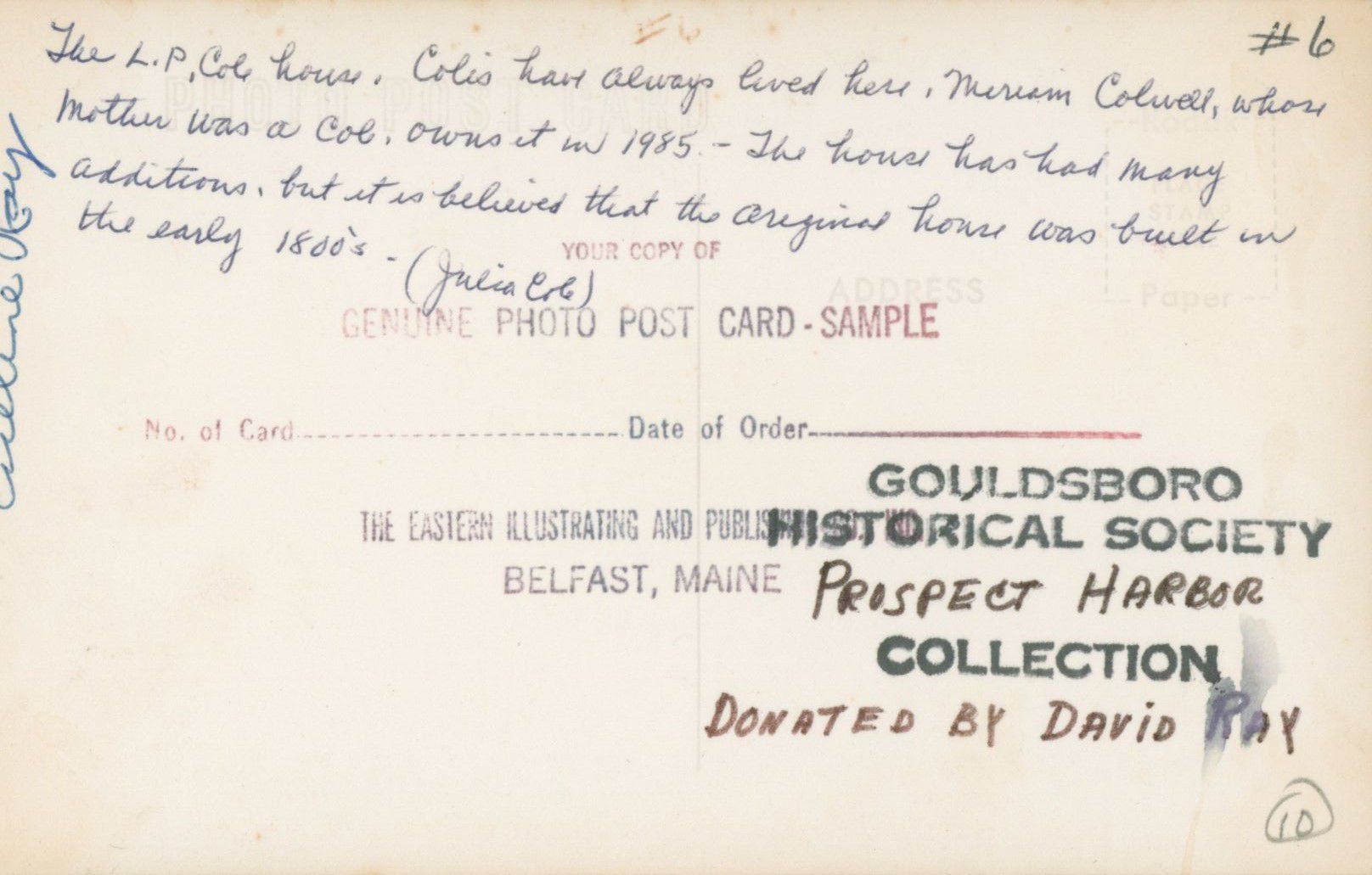 Louis P. Cole residence, Prospect Harbor, ME, 6C. The original house was built in the early 1800s and had many additions. In 1985, author Miriam Colwell, granddaughter of Louis P. Cole, owned the house.Photograph Details