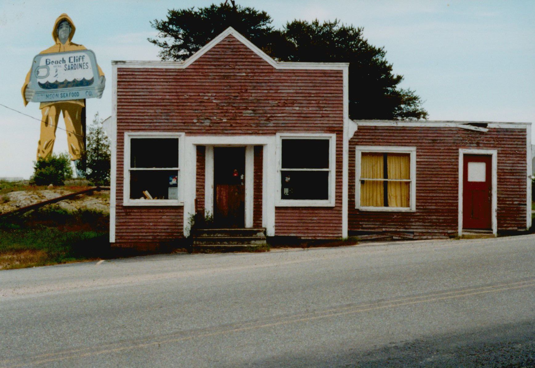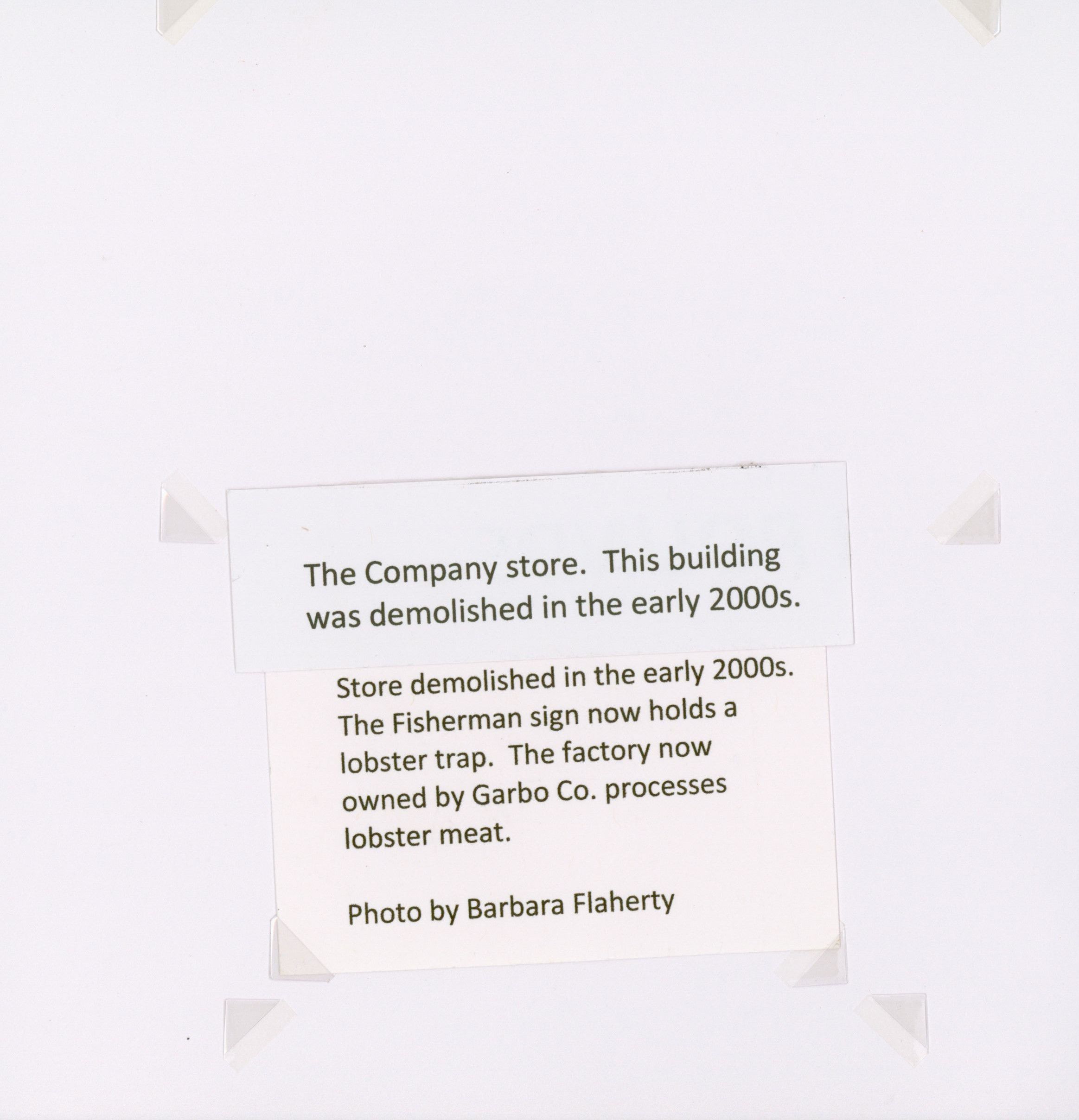 Stinson Company Store, Prospect Harbor, ME. This building was demolished in the early 2000s. The fisherman now holds a lobster trap.Photograph Details