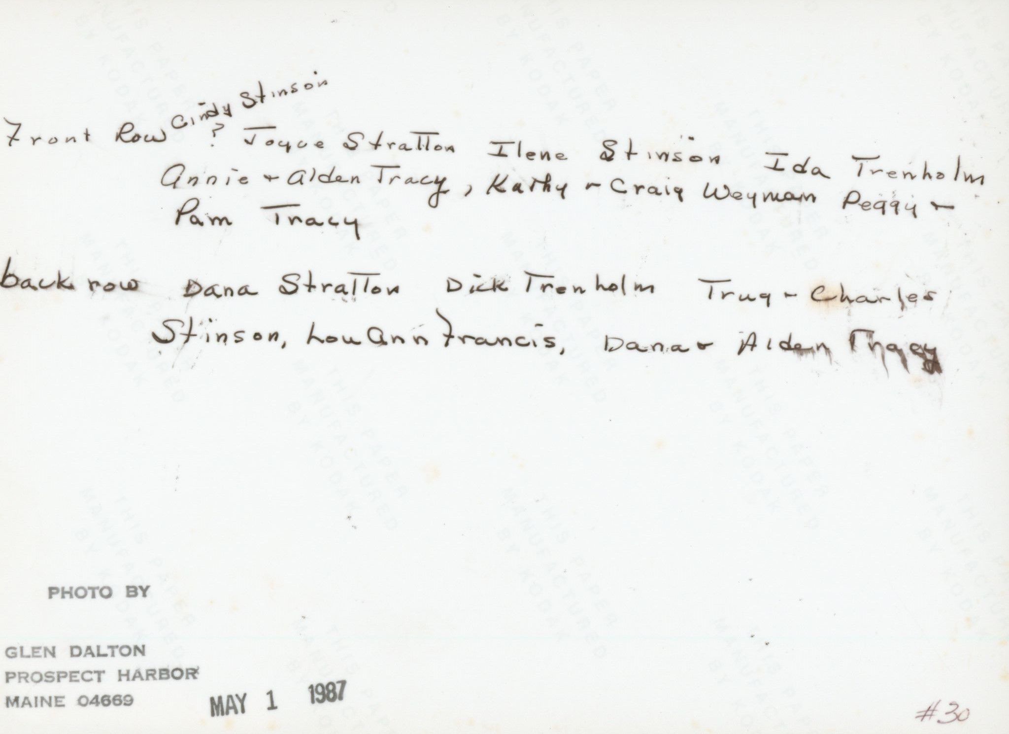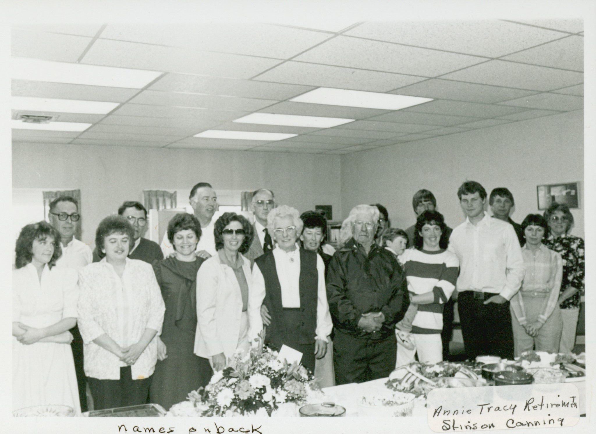 Annie Tracy's Retirement Party from Stinson Canning Company. Names on the back of the photo.Photograph Details