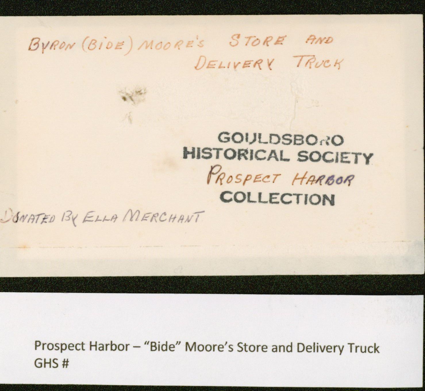Byron Moore's store and delivery truck, Prospect Harbor, MePhotograph Details