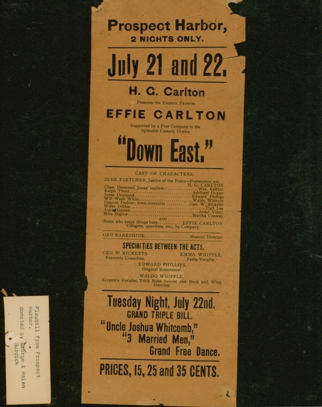 Playbill for comedy "Down East" performed in Prospect Harbor