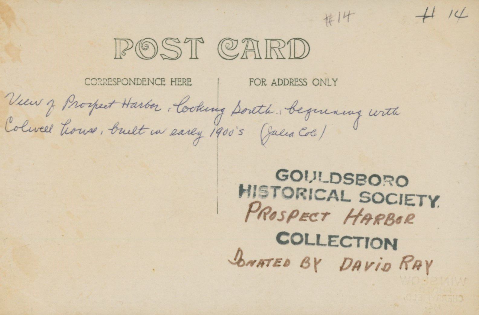 View of the shore of Prospect Harbor, looking south.Entry/Object ID