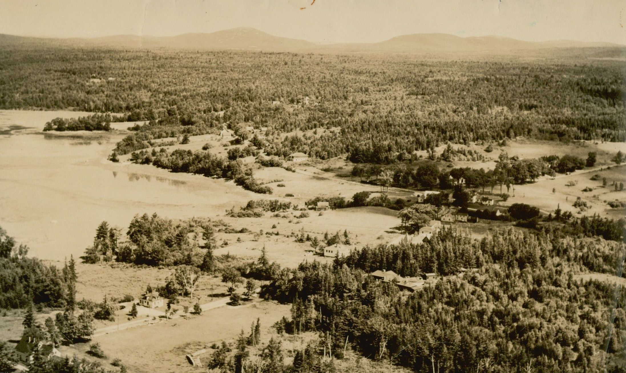 Aerial view of West Gouldsboro looking northwest toward Schoodic Mountain.