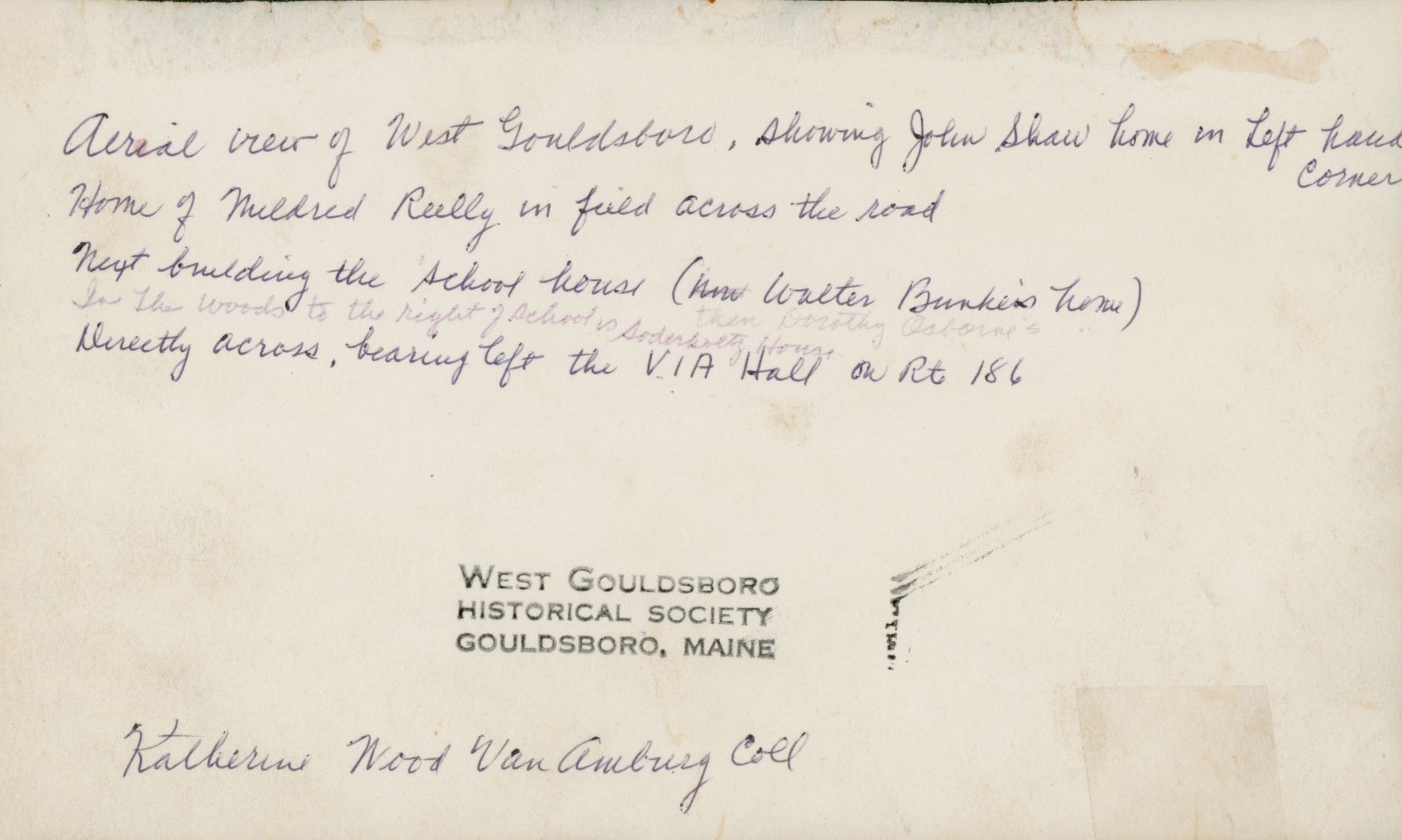 John Shaw house in the lefthand corner. Mildred Riley home in field across the road. Schoolhouse in the center on left side of the road. Eric Soderholtz house in the woods across from the school..Photograph Details