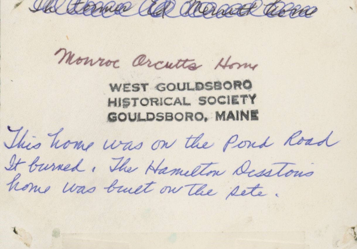 Monroe Orcutt's house on the Pond Road. After it burned, the Hamilton Desston's house was built on the site.Photograph Details