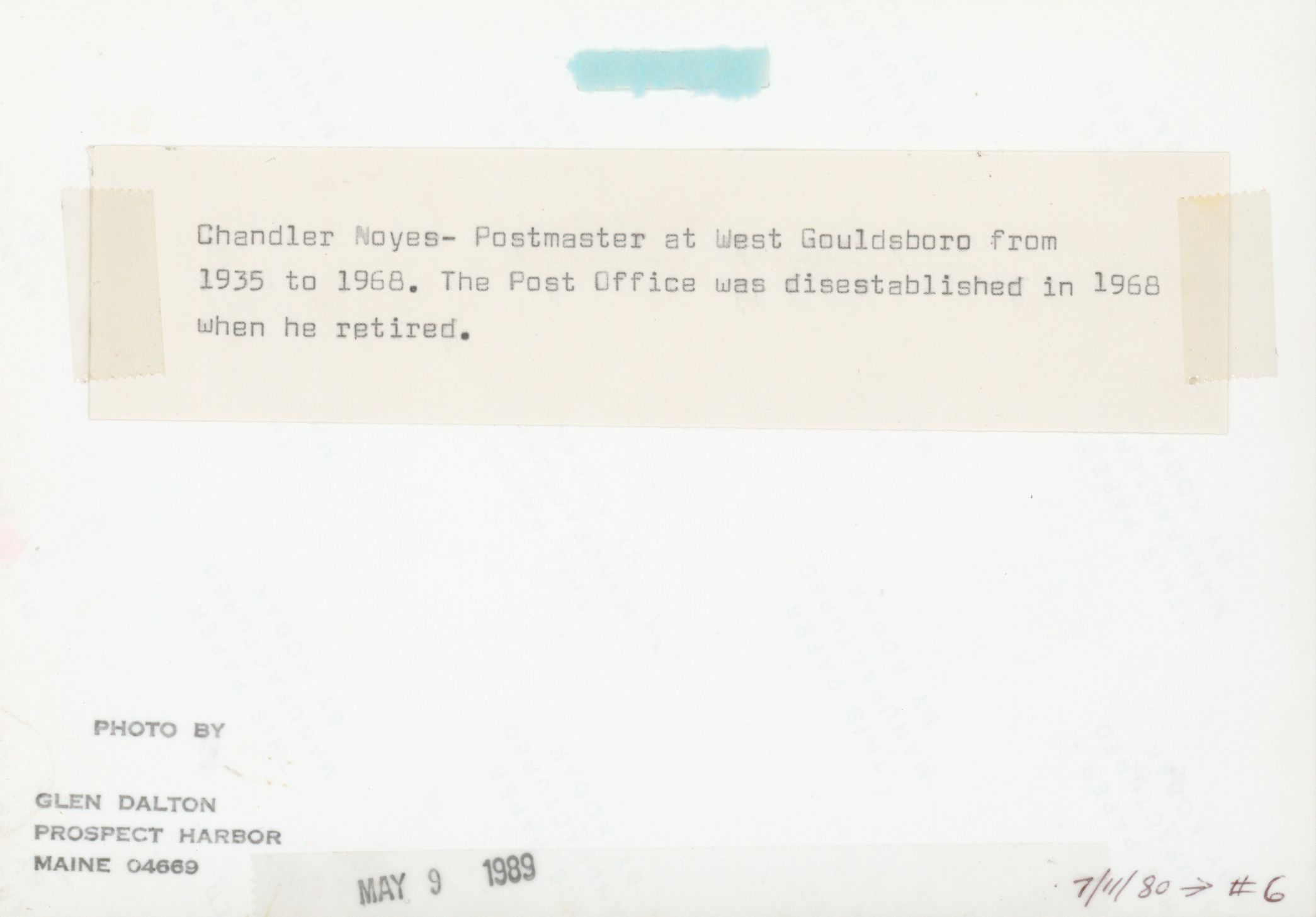 Chandler Noyes, Sr. in the West Gouldsboro Post Office.Entry/Object ID