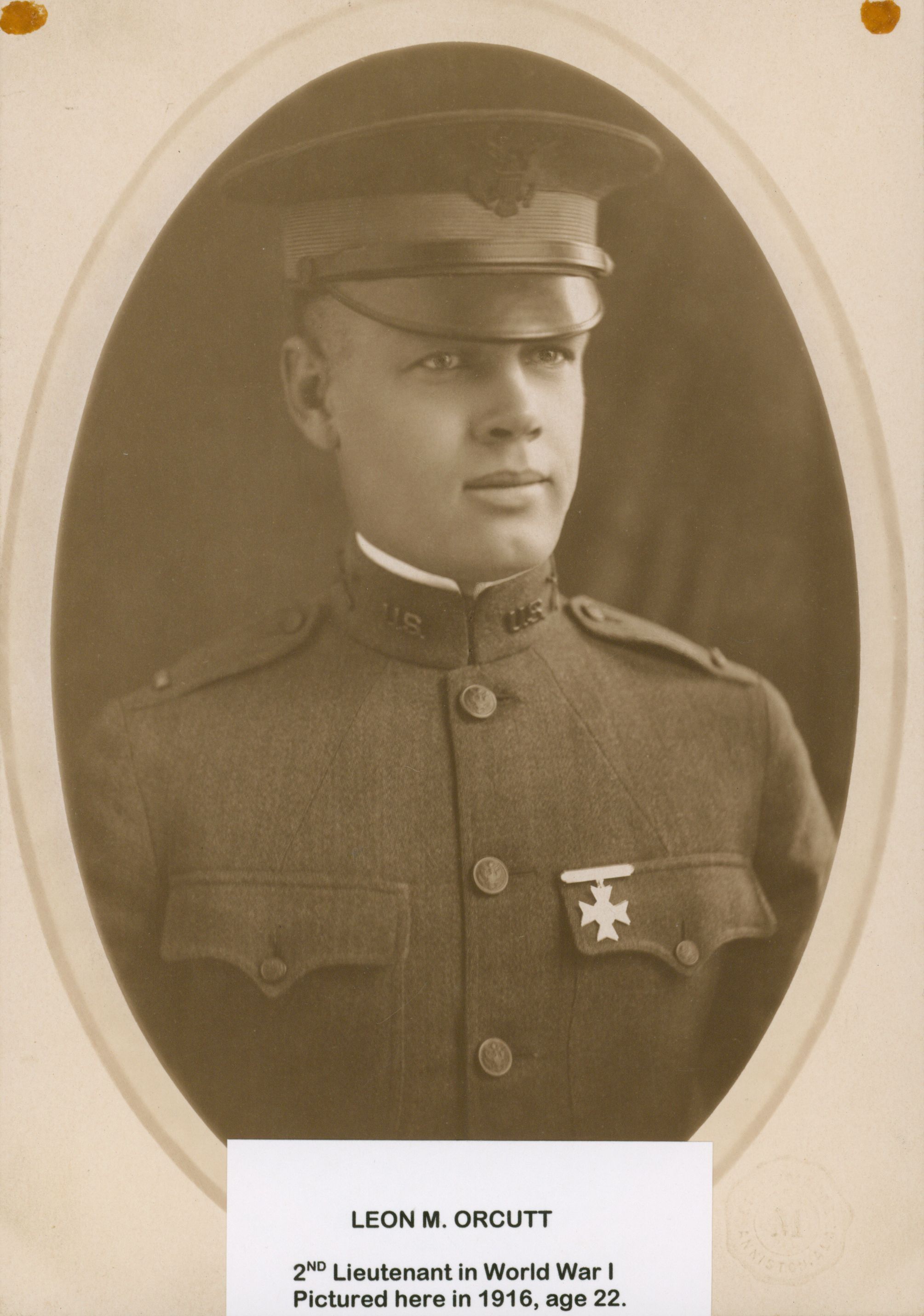 Leon M. Orcutt. 2nd Lieutenant in WWI. Age 22 years. Son of Leonard and Martha Orcutt. Buried in Fort Snelling National Cemetery in Minneapolis, Minnesota.Photograph Details