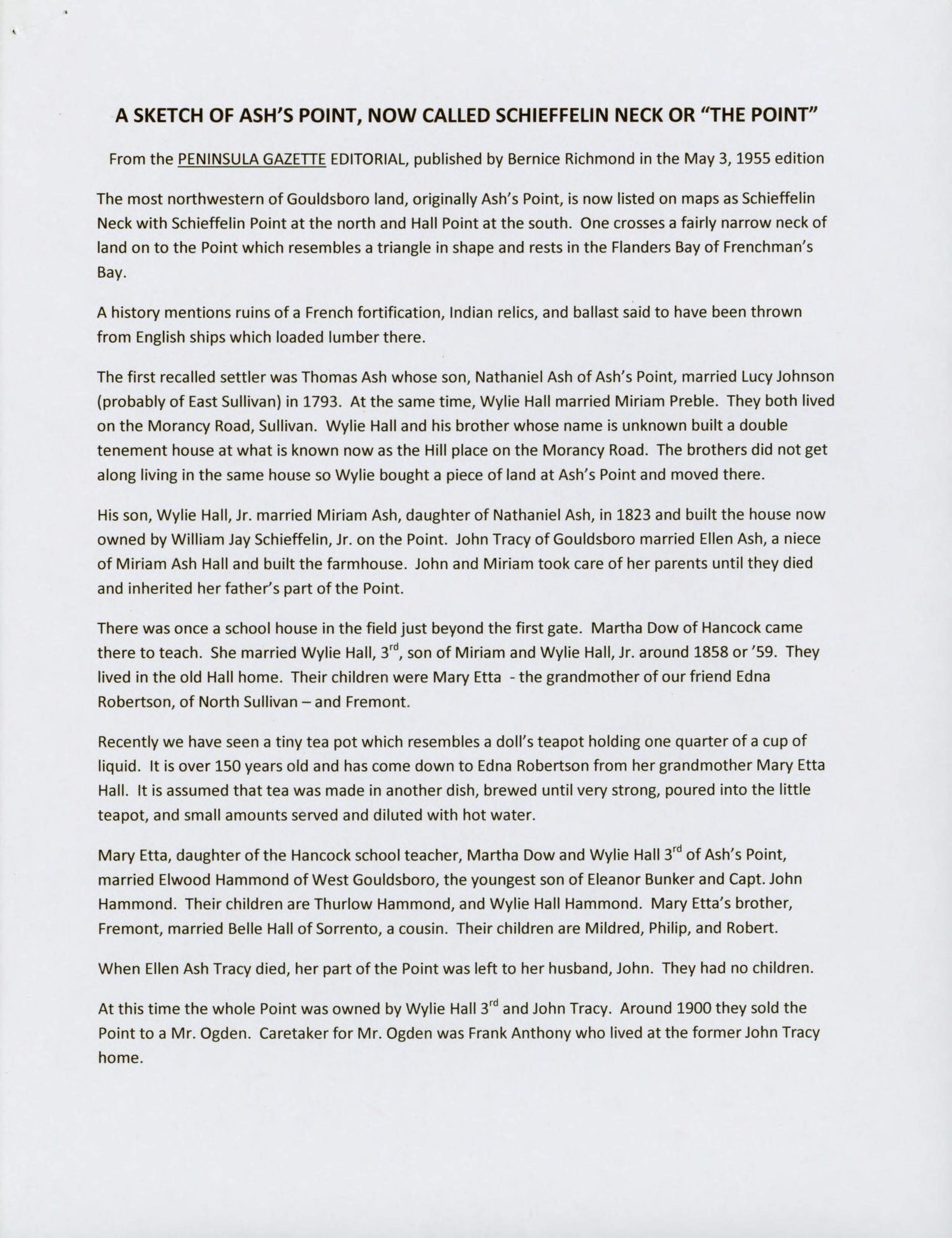 Article from the Peninsula Gazette about the name change of Ash's Point to Schieffelin Neck/PointArchive Details