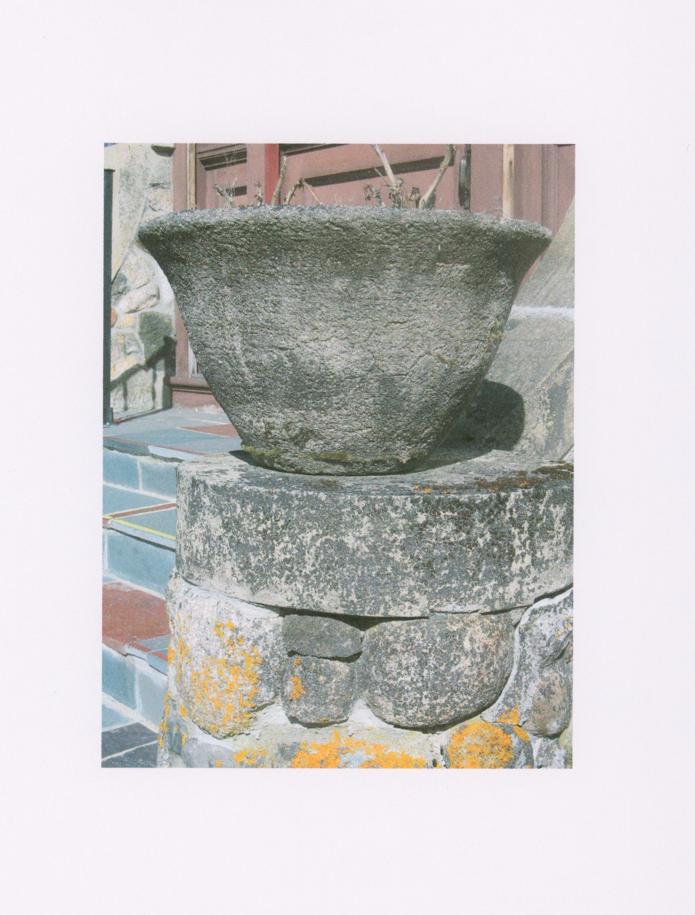 Soderholtz flower pot on stairs of West Gouldsboro Village Library (mid-view).Entry/Object ID