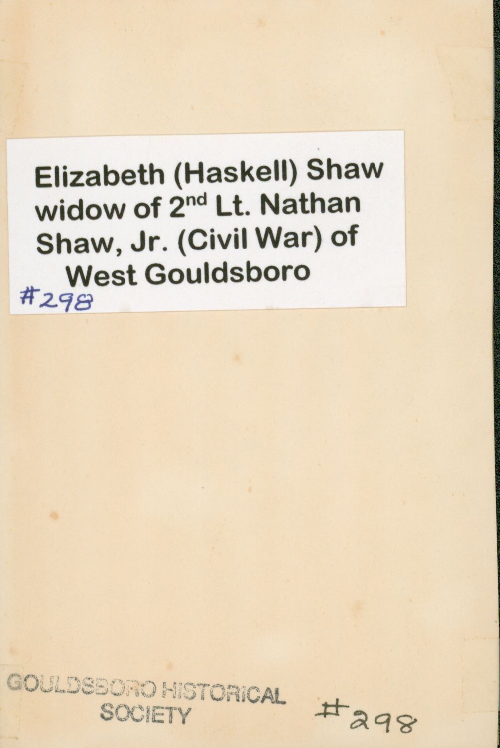 Elizabeth Haskell Shaw, wife of Nathan Shaw, Jr. Daughter of William Haskell and Sybil Foster Stevens Haskell of Steuben.Photograph Details
